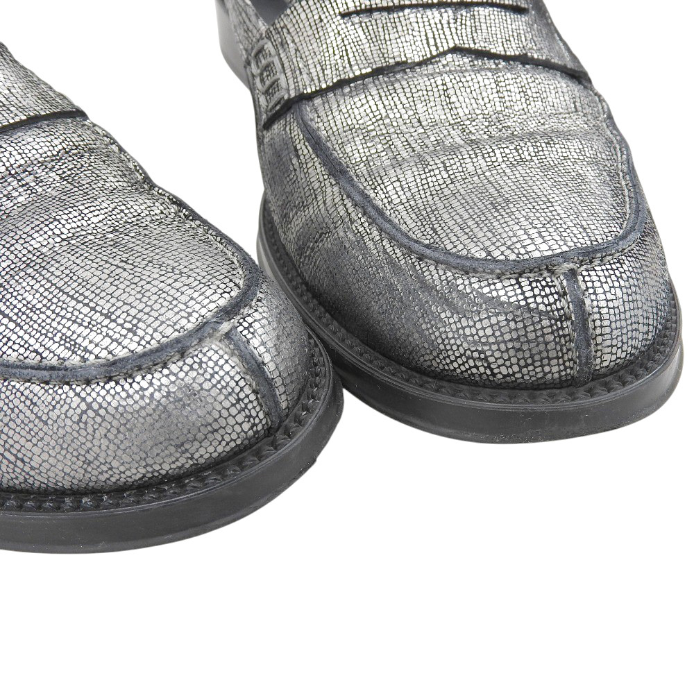 TOD'S トッズ クラック加工 コインローファー シューズ レディース シルバーグレー 37 1/2