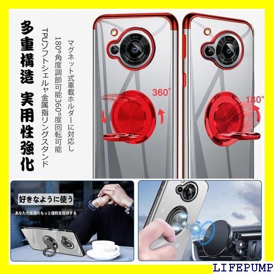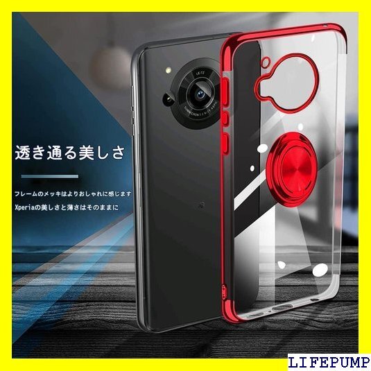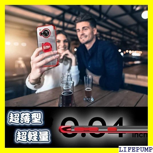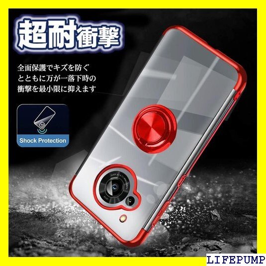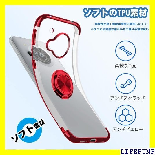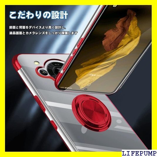 AQUOS R7 ケース リング クリア SH-52C 能 車載ホルダー 対応 一体型 スマホ保護カバー レッド 275