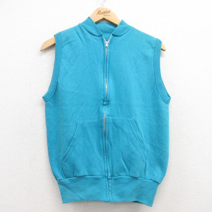 【商品名】 S★古着 ノースリーブ フルジップ スウェット メンズ 80年代 80s 無地 水色