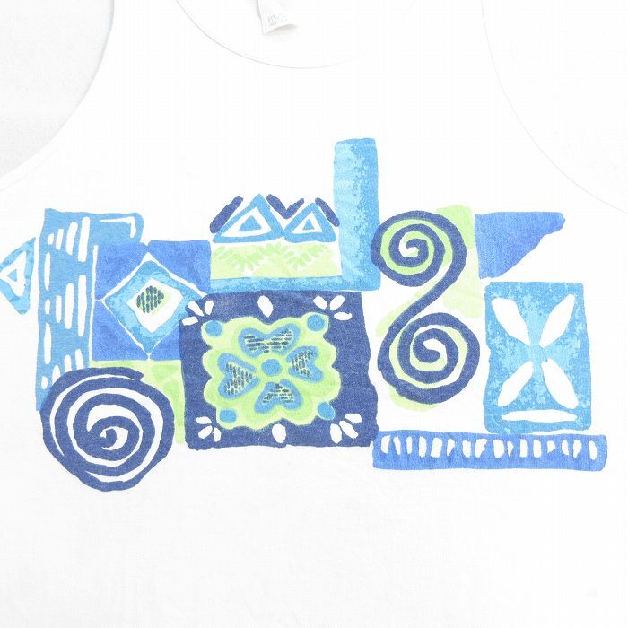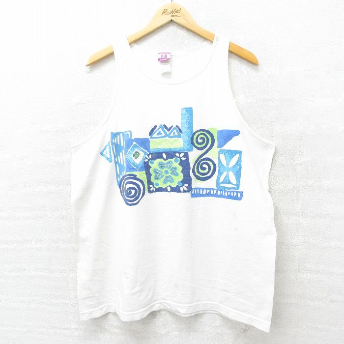 【商品名】 XL★古着 ビンテージ タンクトップ メンズ 90年代 90s 花柄 大きいサイズ コットン クルーネック USA製 白