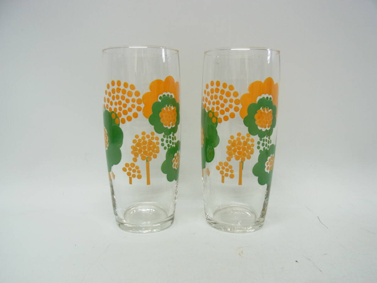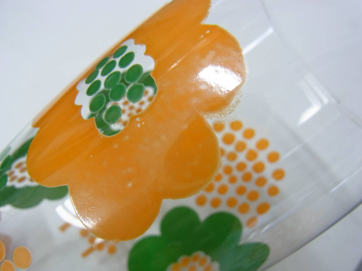 | レトロポップ☆高さ約14cm レトロフラワー タンブラー グラス☆花 フラワー オレンジ グリーン 昭和 レトロ ポップ ヴィンテージ 60 | |||