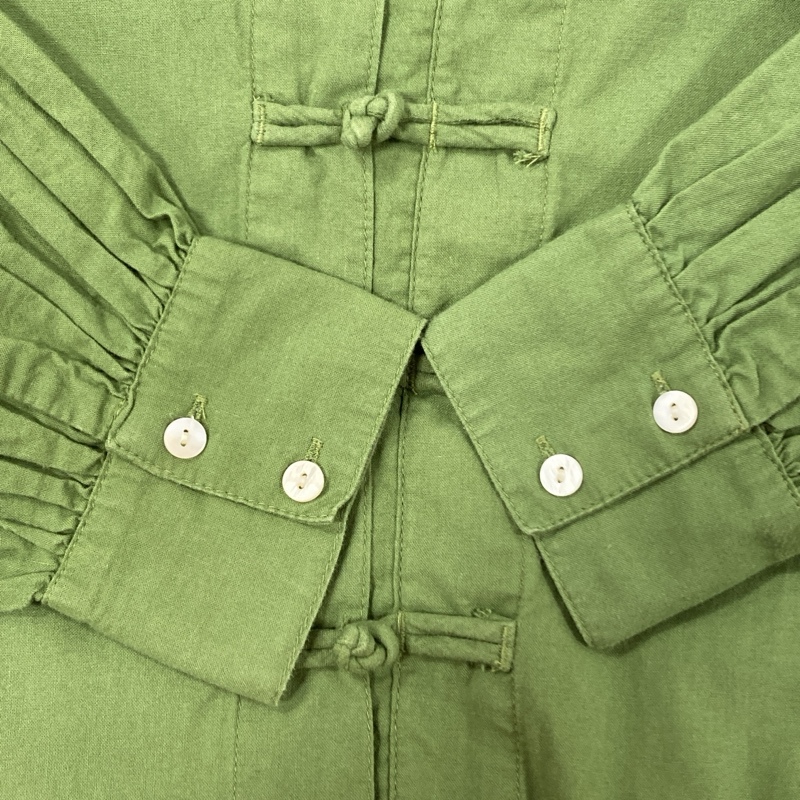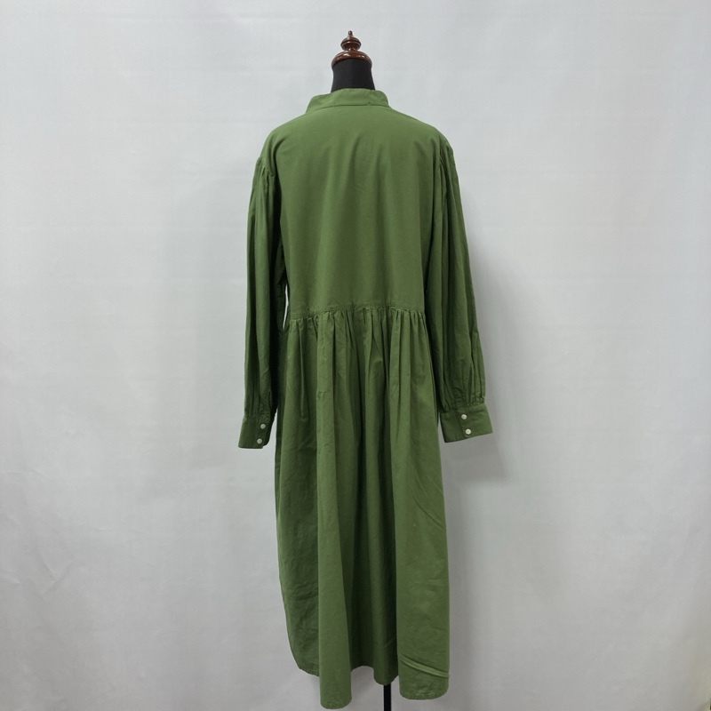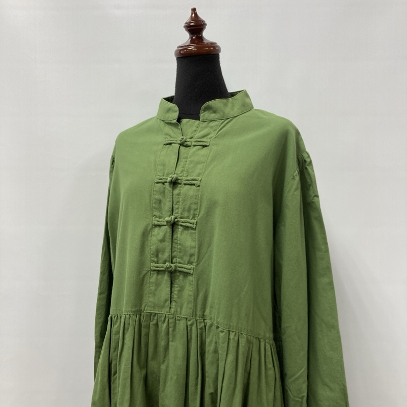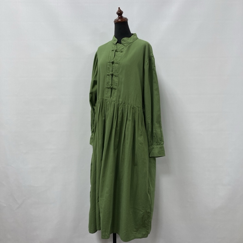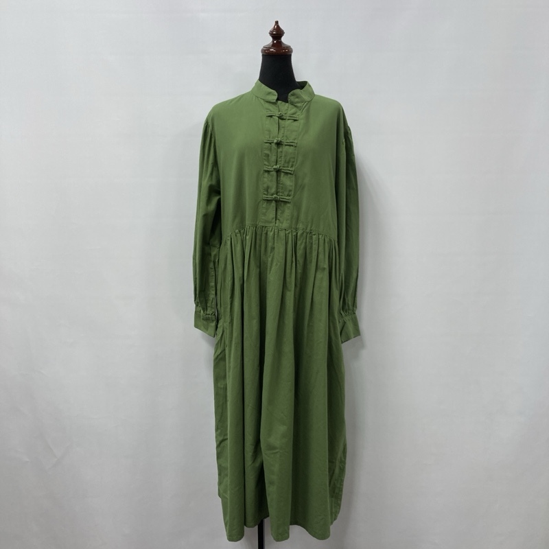 ●fu-dueka::/エーカ/チャイナワンピース/フロントチャイナボタン/ギャザーデザイン/ふんわりシルエット/ロングワンピース/グリーン系