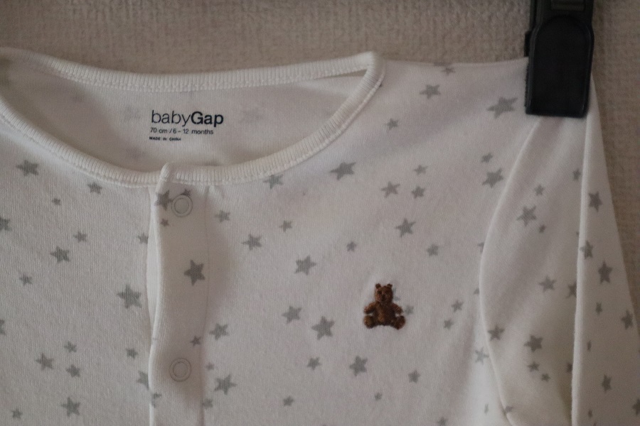 クマ刺繍入り baby gap ロンパース 70cm 6-12 morthis ホワイト×ライトグレー です。