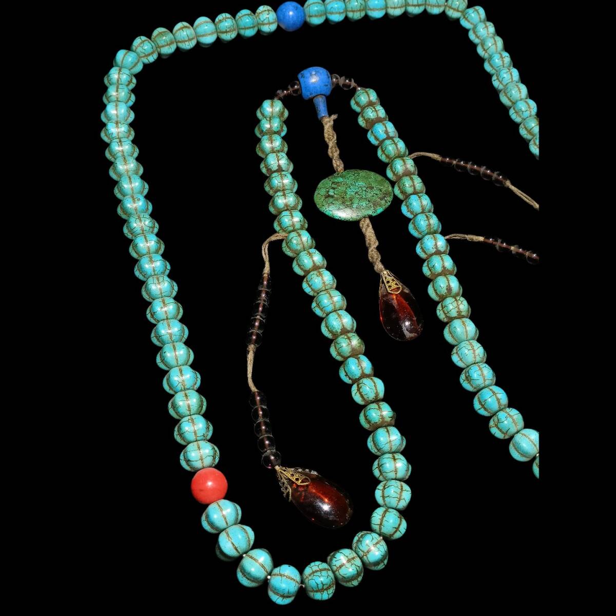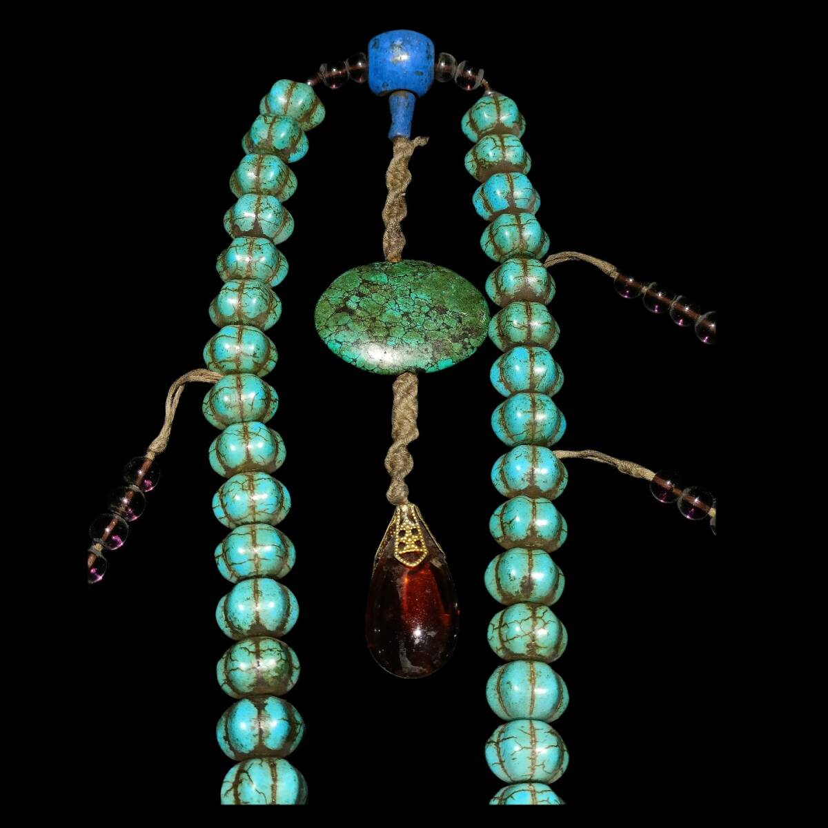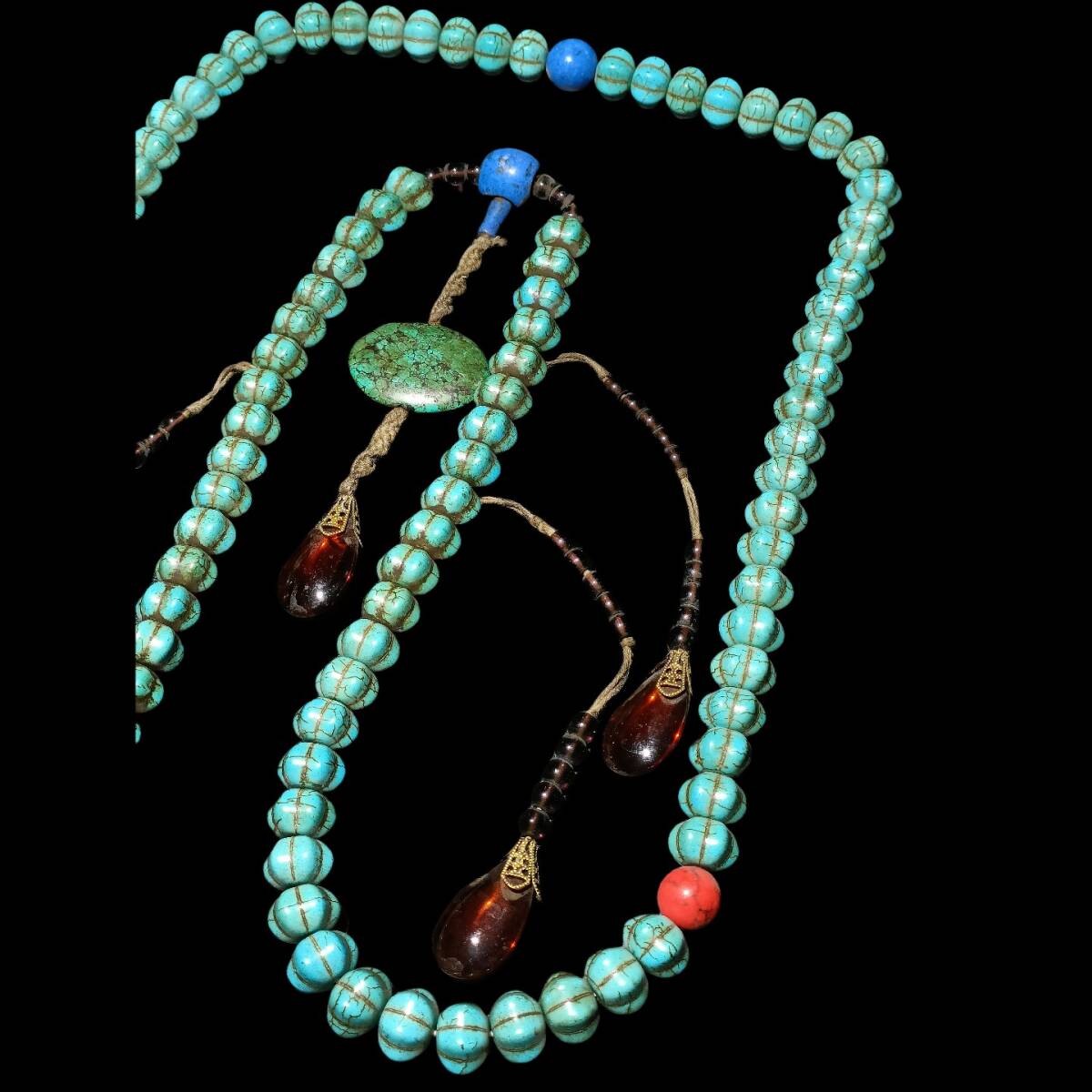 人間国宝 和田玉【清代の宮廷官帽にトルコ石の朝珠をつけてセットにしました】中国古美術 中国骨董 工芸品 彫刻品 時代物 本物 珍品旧蔵 伝世家珍 | |||