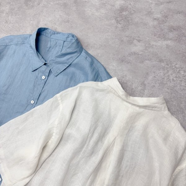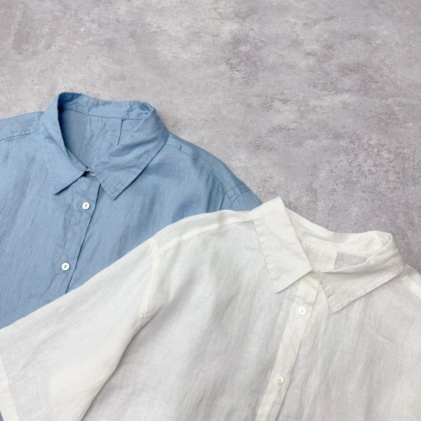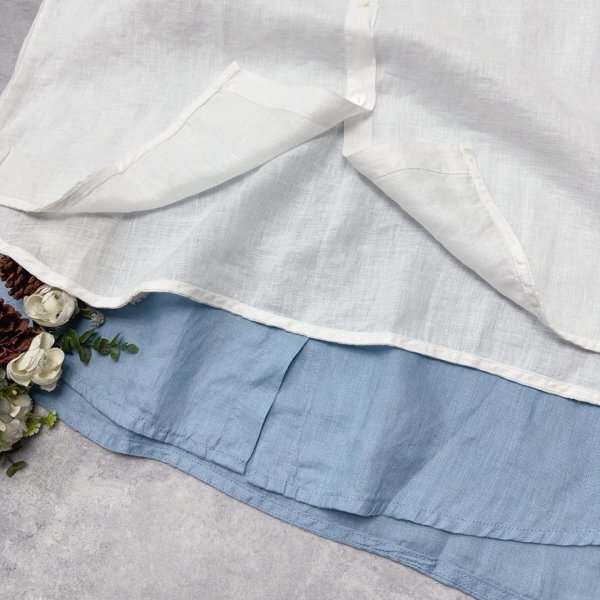 ns 2507 ホワイト ワイシャツ トップス チュニック ゆったり 麻100%リネン RINEN ふんわり ナチュラル 肌触りいい サラサラ 爽やか ブルー