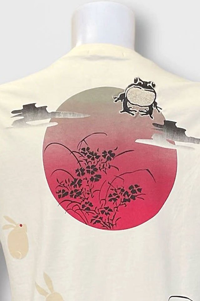 「参丸一」さんから「月見兎半袖Tシャツ(ST-50065)」のご紹介です。 お月見を楽しむ兎たち。 その視線の先には、月で楽しそうに跳ね回る親子兎の姿が描かれています。 可愛らしいモチーフを取り入れた、微笑ましい半袖Tシャツです。 もちろん蛙もしっかり添えられています。 ボディーには、柔らかな肌触りのTシャツ生地を採用しました。 | ||||||||||||||||||||