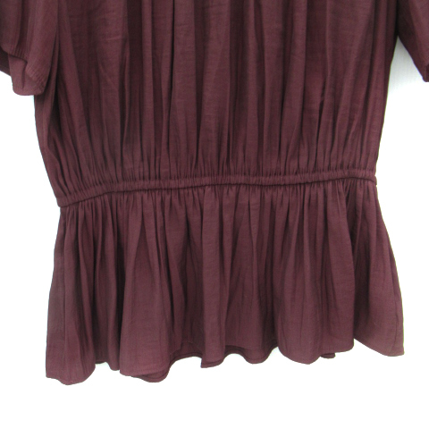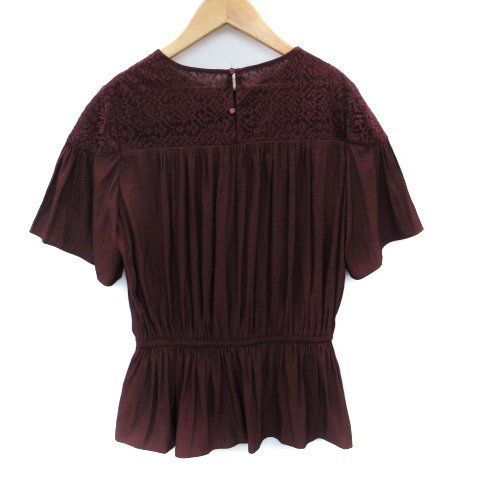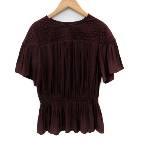 グローブ grove カットソー 半袖 ラウンドネック レース ペプラム L ボルドー /SM21 レディース