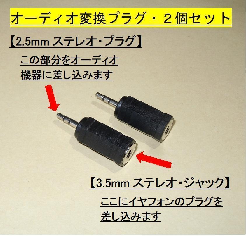 オーディオ変換プラグ【2個】ステレオ◆3.5mmジャック ⇒ 2.5mmプラグに変換します・・・◆新品、未使用