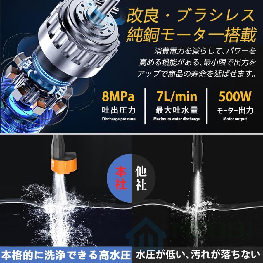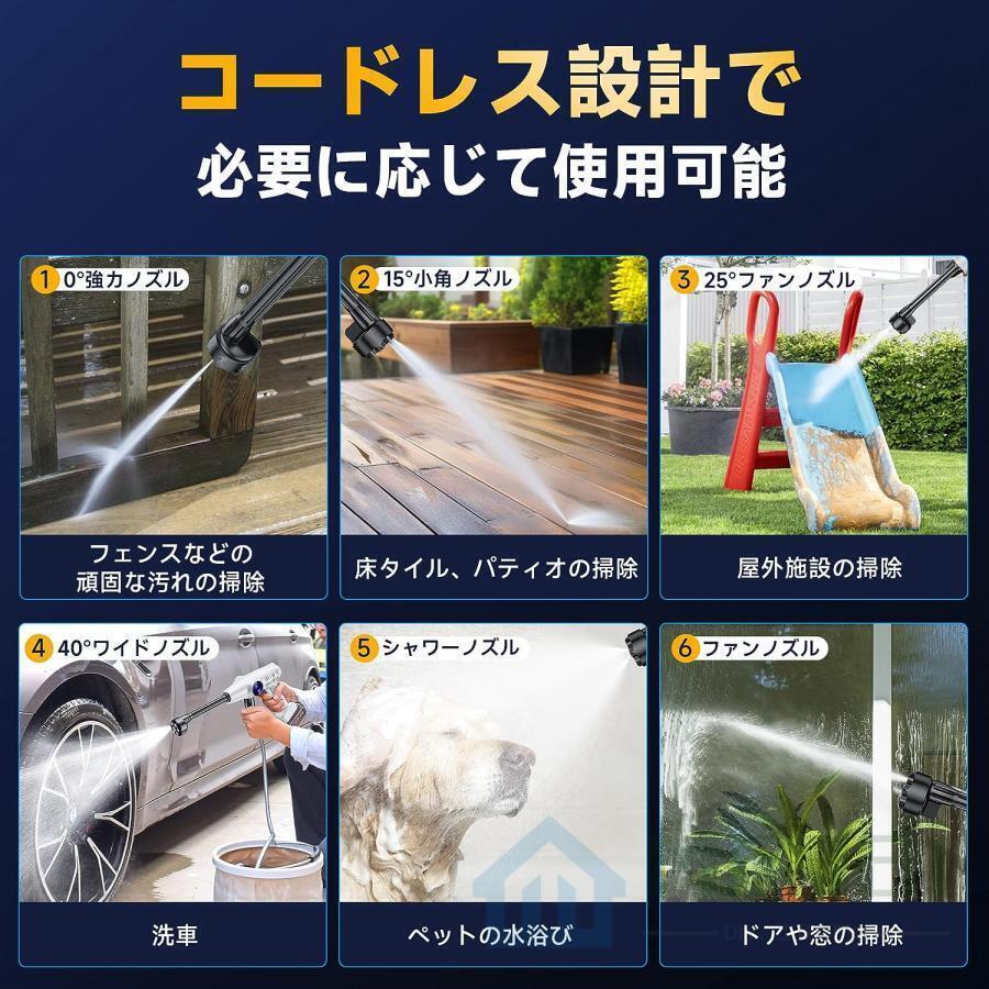 充電式 高圧洗浄機 8.0MPa 6in1 コードレス 3段階水圧調整マキタ18Vバッテリー対応 ハンディ バッテリー 充電器付 強力 家庭用電動工具