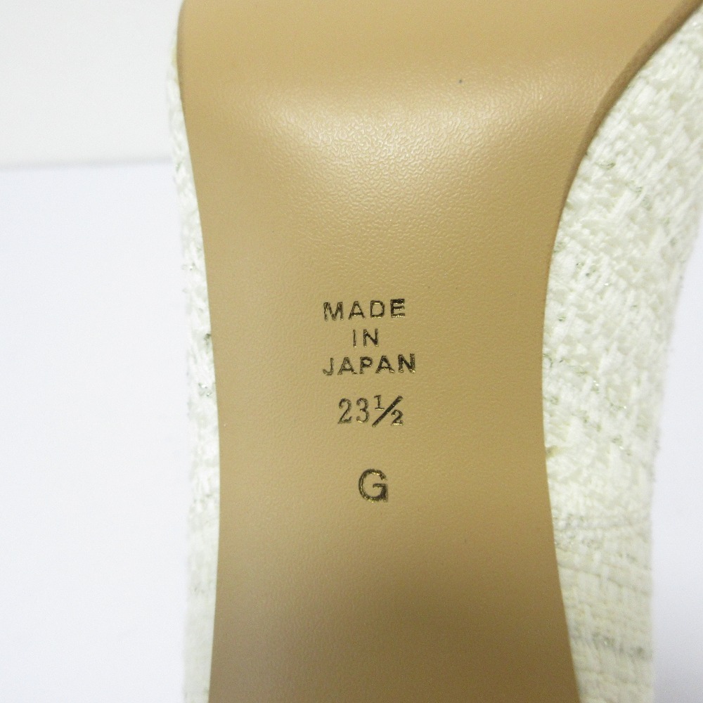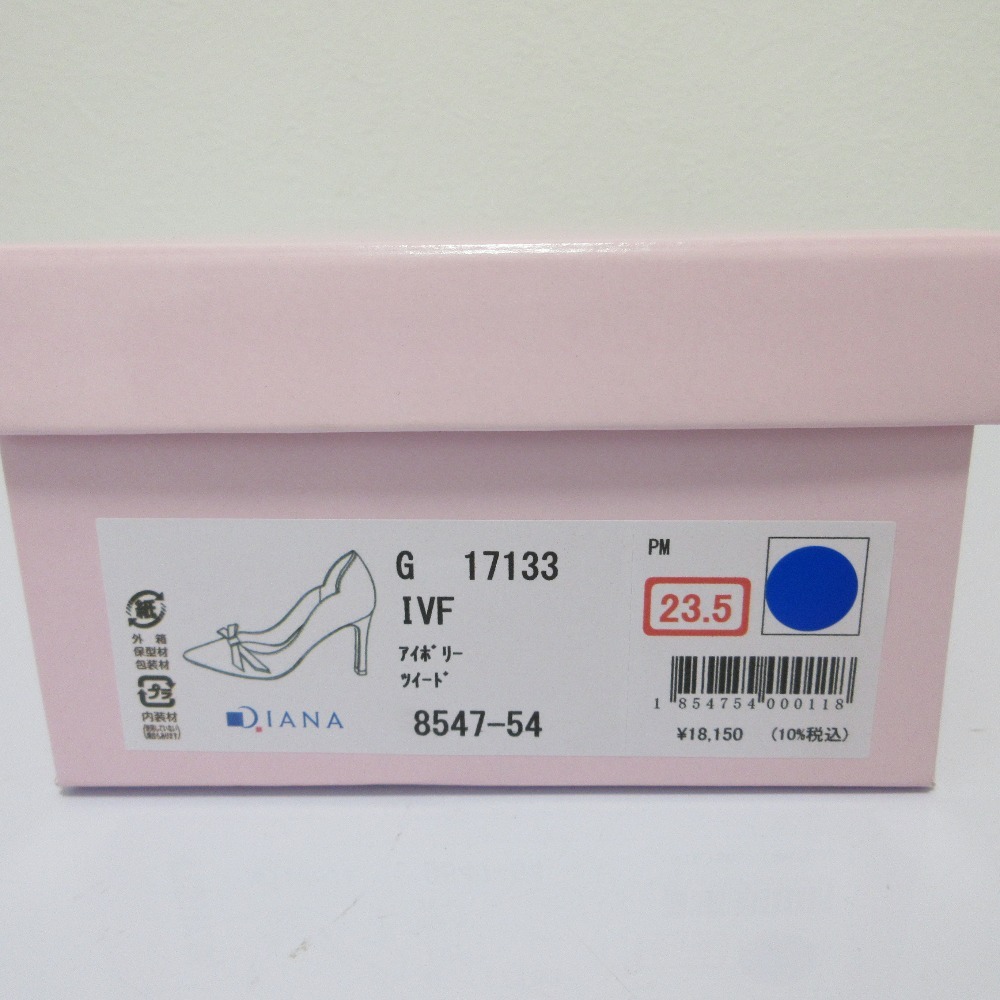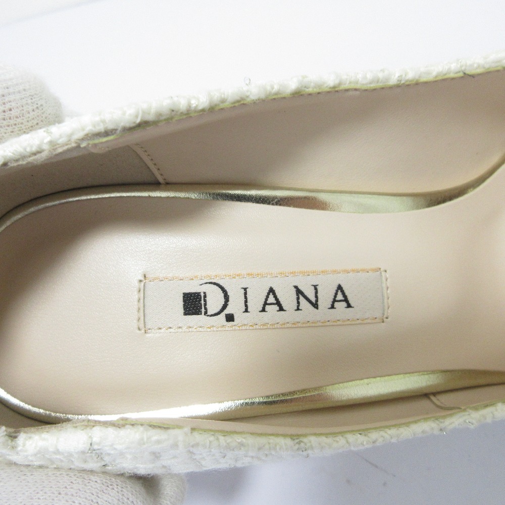 未使用 DIANA ダイアナ リボン ピンヒール ポインテッドトゥ ツイードパンプス G17133 23.5cm アイボリー