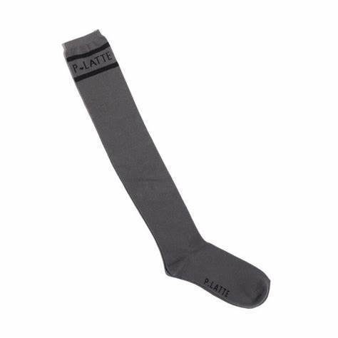 新品 PINK-latte  ロゴラインニーハイ ソックス  チャコールグレー(014) 22~24cm 定価770円