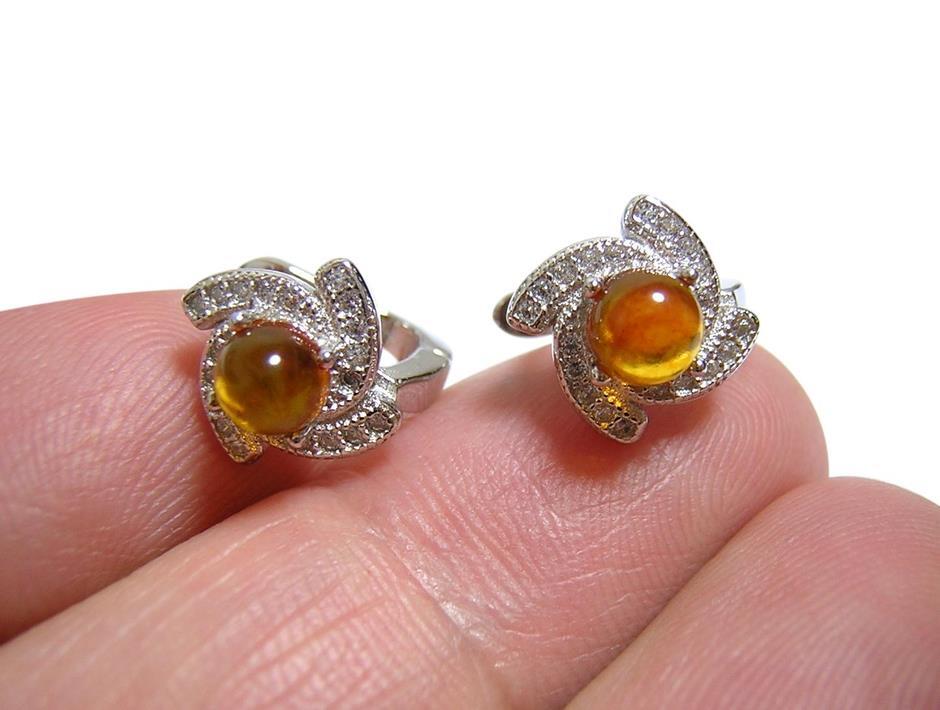 ポーランド産の天然琥珀とキュービックジルコニアを使用したピアスです。 琥珀の大きさは約4.8mmです。 【中石】天然琥珀 【産地】ポーランド産 【処理】非加熱 【カット】ラウンドカボションカット 【脇石】キュービックジルコニア 【重さ】3.8g 【サイズ】縦11mm×横11mm ポスト長さ10mm 【素材】シルバー925 (14金ホワイトゴールド仕上げ) 【刻印】S925 【状態】新品 ※地金部分に製作時からの微細な小傷やスレがあります。 |