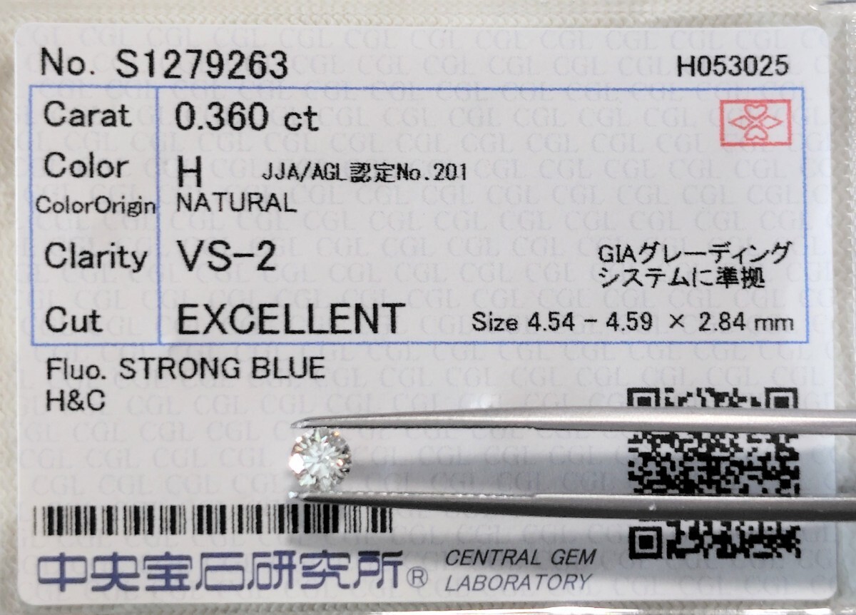 【11/14(金)】天然ダイヤモンド ルース 0.360ct H VS2 鑑別 CGL│A5417gv【EX up】 ダイヤ diamond