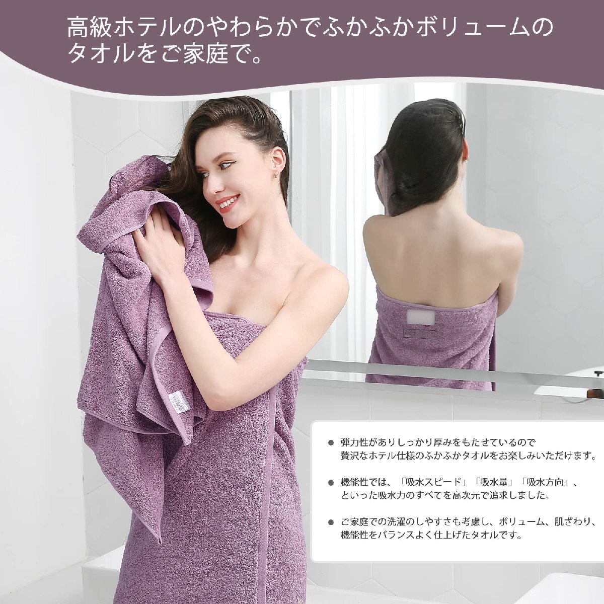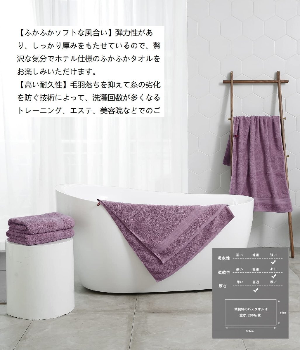 ブランド:GraceAierカラー:アッシュパープルサイズ:バスタオル【高品質の綿バスタオル4枚セット】サイズ:約60×120cm、重量:約290g,このバスタオルは、綿糸の中でも最高級の「コーマ綿」繊維を使用しており、長繊維を丁寧に加工することで、柔らかくしっとりとした肌触りを実現しました。掉毛が少なく、長期的な使用にも耐えられます。洗濯しても毛羽立ちが少なく、清潔感を保ちやすく、長くお使いいただけます。
