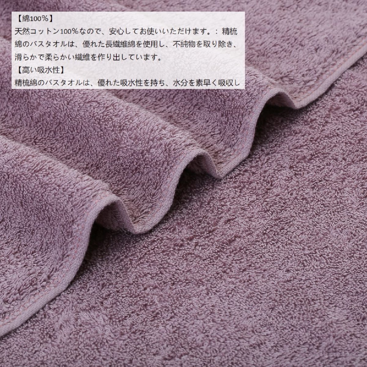 【高い吸水性】:精梳綿のバスタオルは、優れた吸水性を持ち、水分を素早く吸収し、お風呂やシャワー後に快適なドライな肌触りを実現します。お風呂から上がったときに、しっかりと水分を吸収してくれます。また、水泳後や運動後など、汗をかいたときにも、速乾性が高いため、すぐに乾かすことができます。