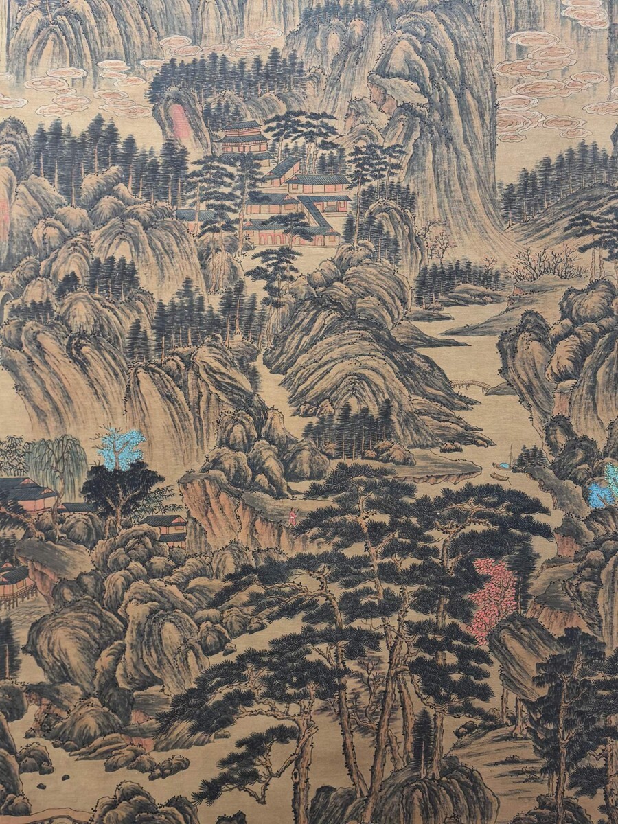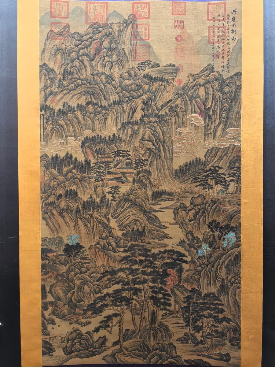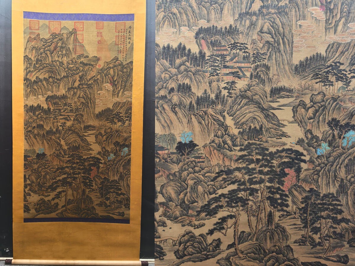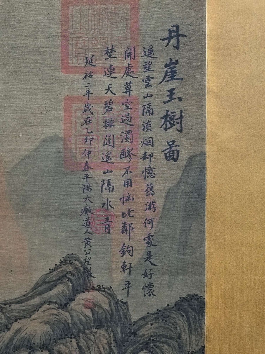 中国書画「元 黄公望 丹崖玉樹図」肉筆絹本 掛け軸 墨寶妙品 書画立軸 巻き物 古美術 旧蔵出