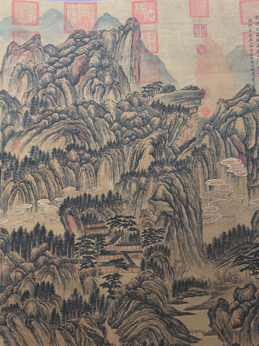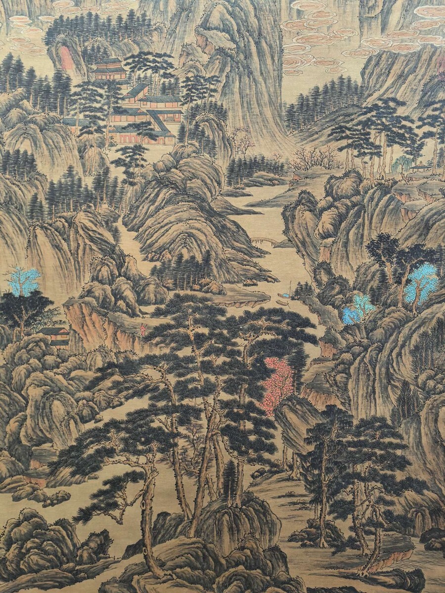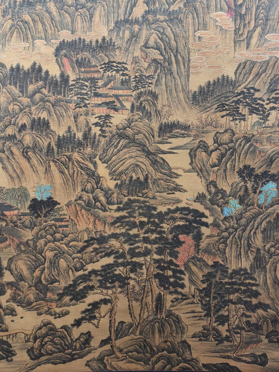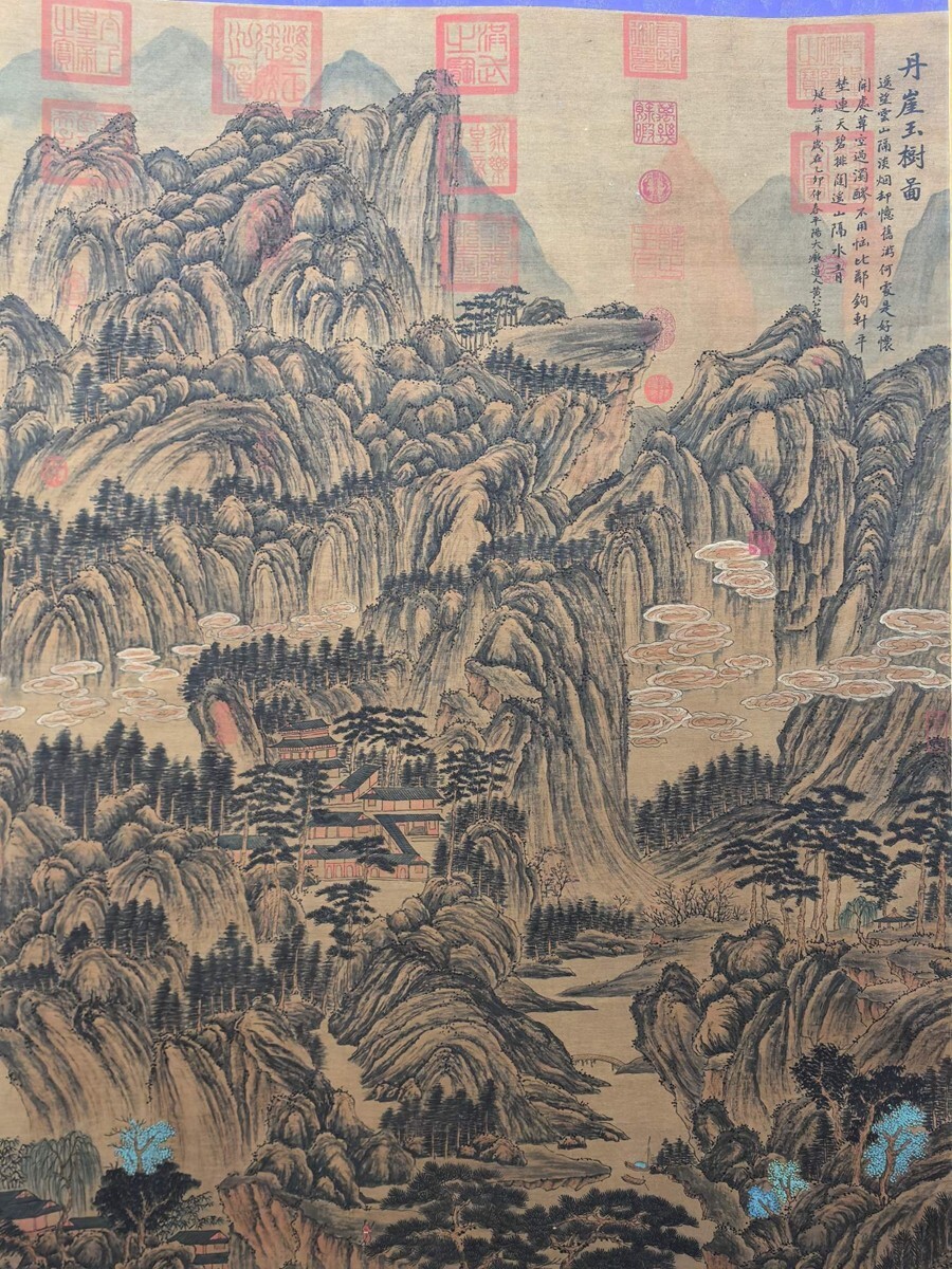 中国書画「元 黄公望 丹崖玉樹図」肉筆絹本 掛け軸 墨寶妙品 書画立軸 巻き物 古美術 旧蔵出