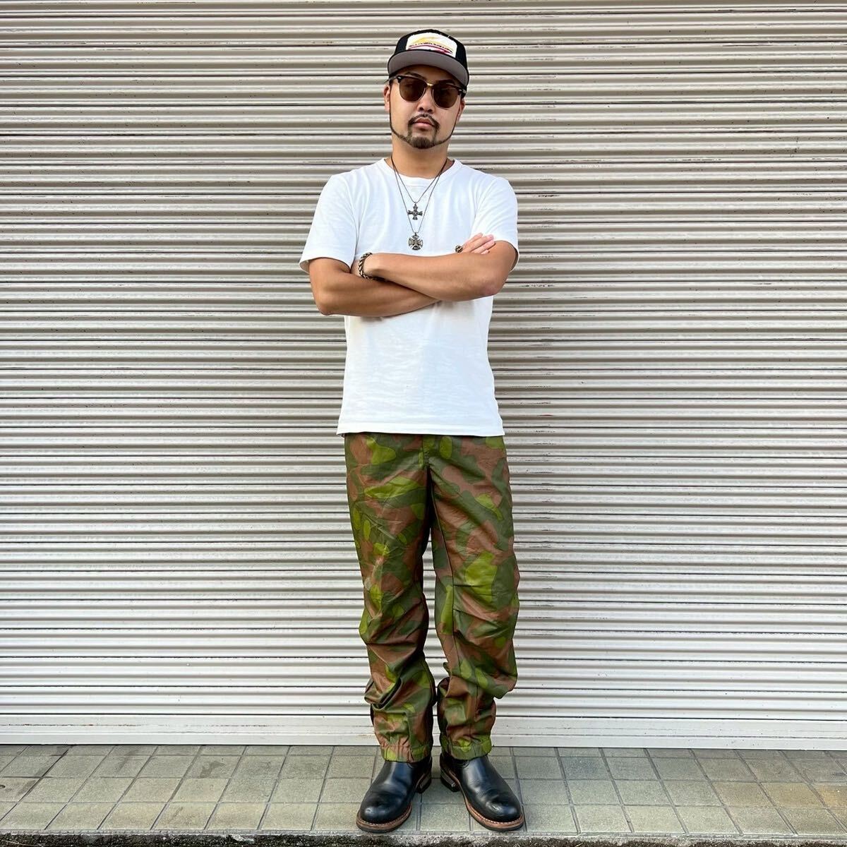 フィンランド軍の代表的な迷彩「M62ブラッシュカモ」をまとったカーゴパンツ。