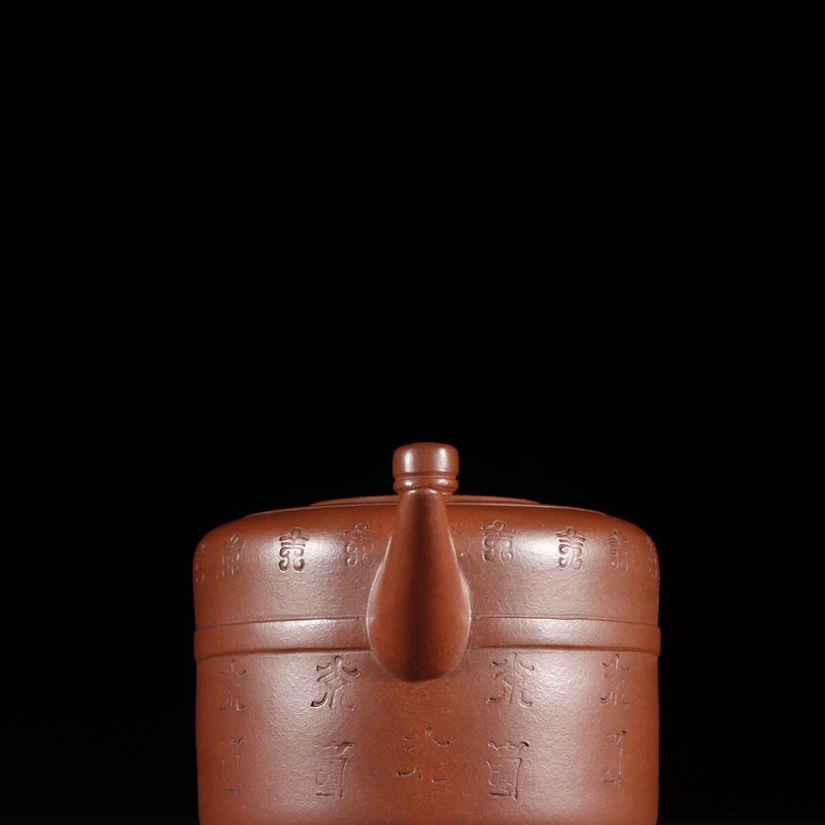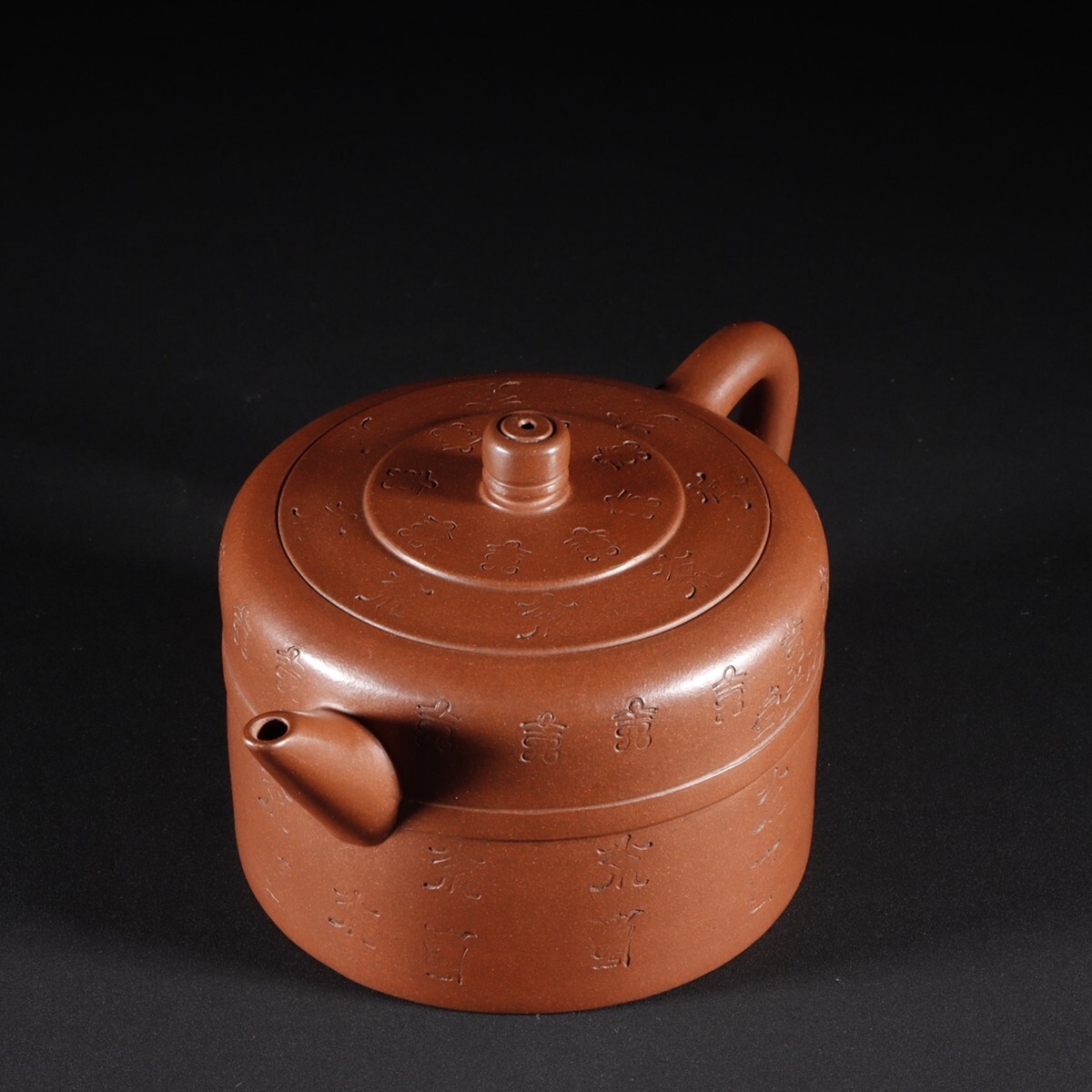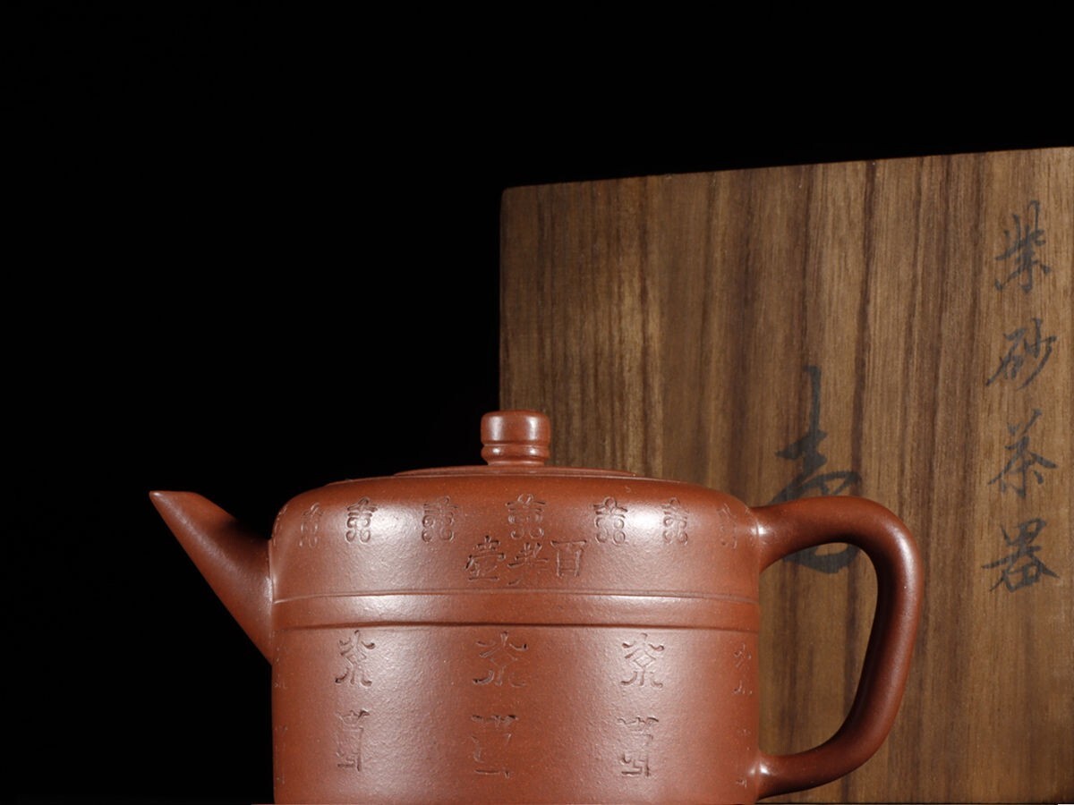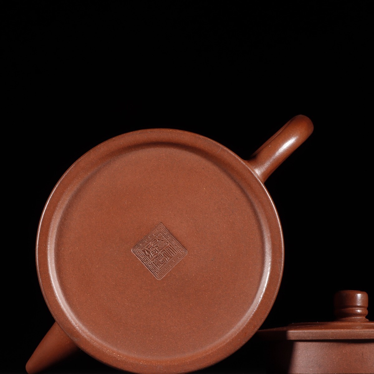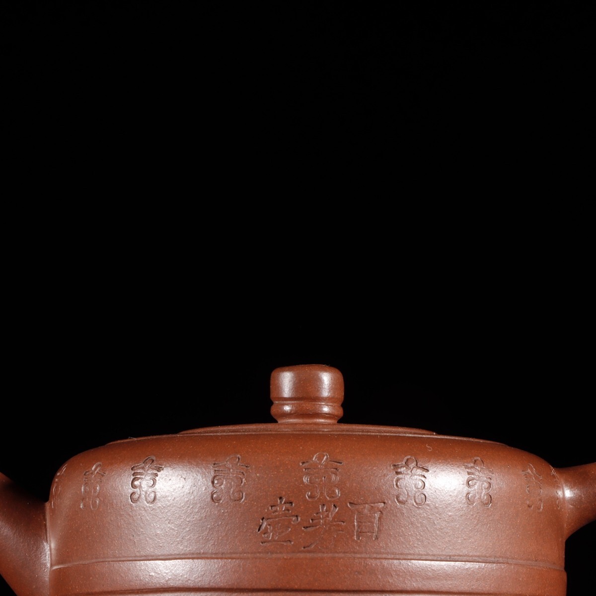 清時代 紫砂彫 印花紋腰線矮汲直老紫砂茶壺 邵友蘭製【仁】中国陶磁器 急須 茶壷 茶道具 置物 蔵出