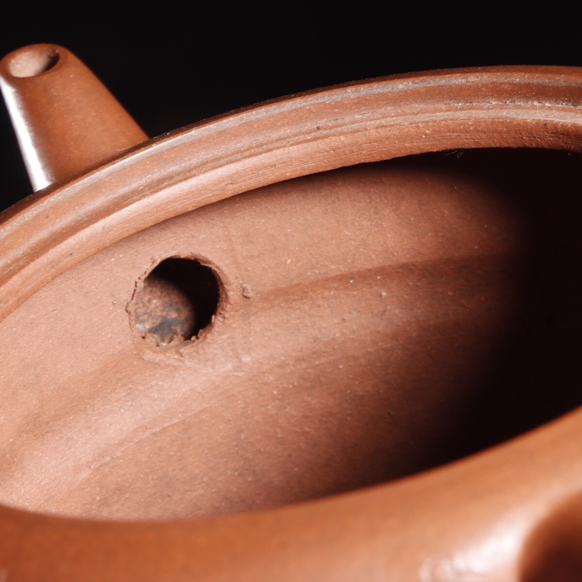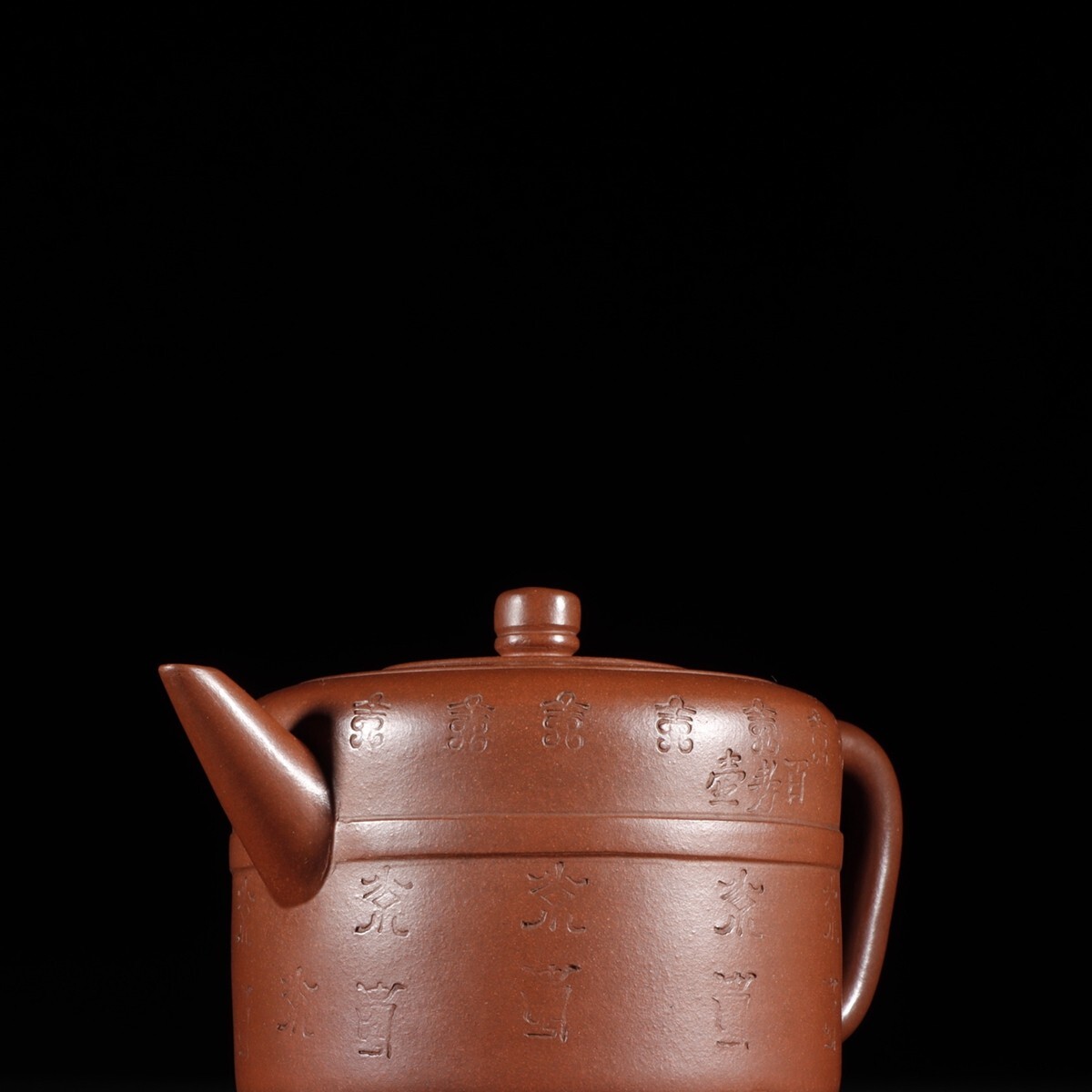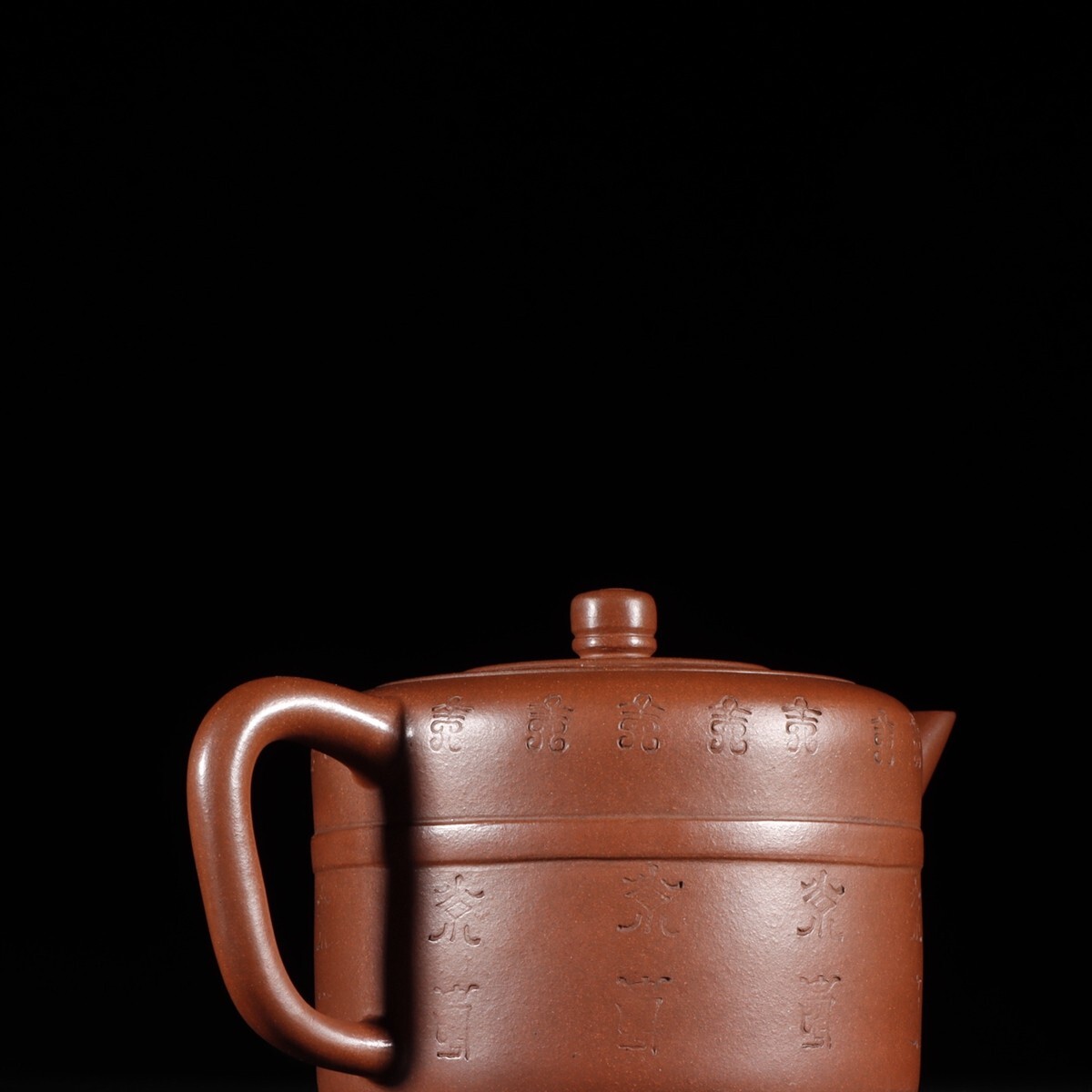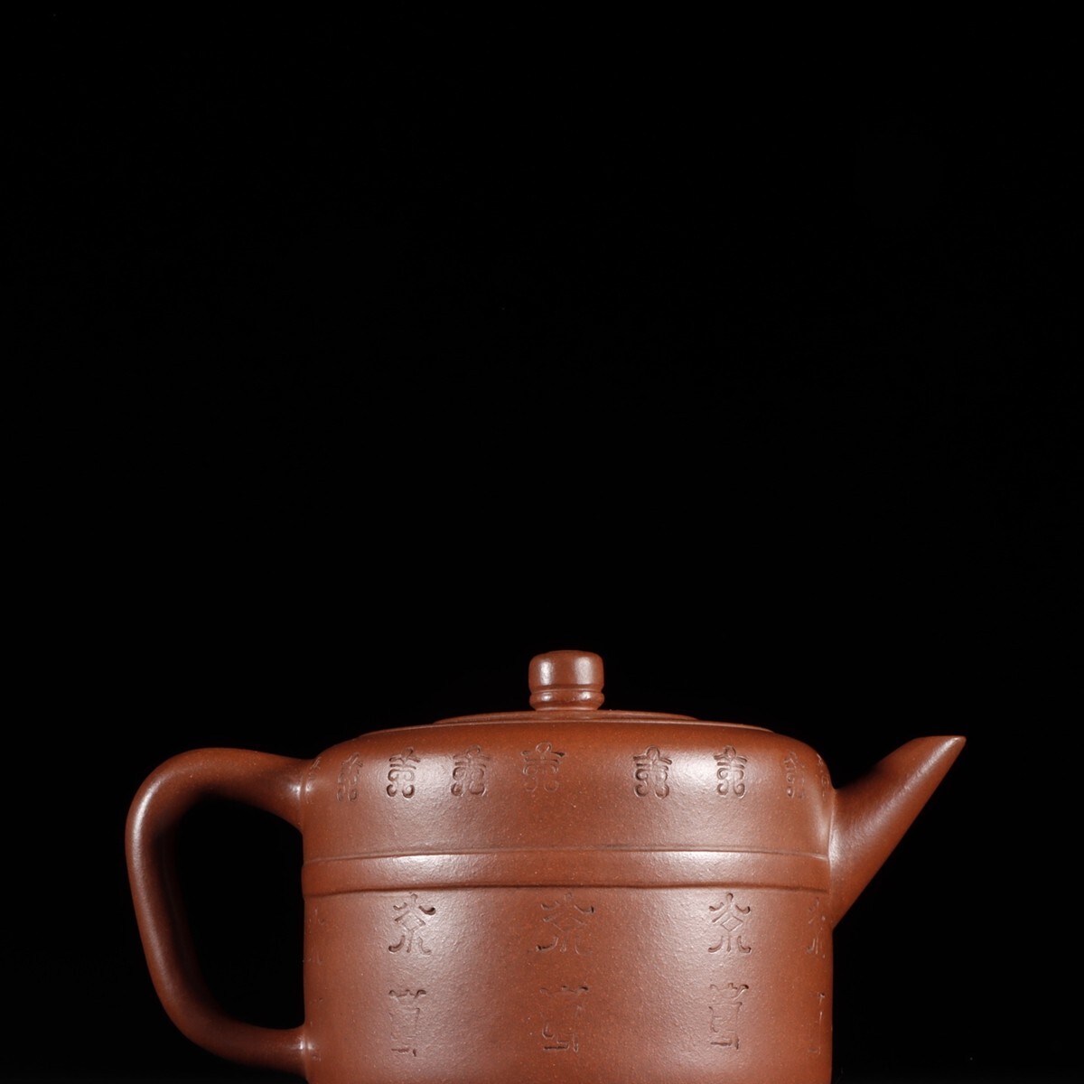 清時代 紫砂彫 印花紋腰線矮汲直老紫砂茶壺 邵友蘭製【仁】中国陶磁器 急須 茶壷 茶道具 置物 蔵出