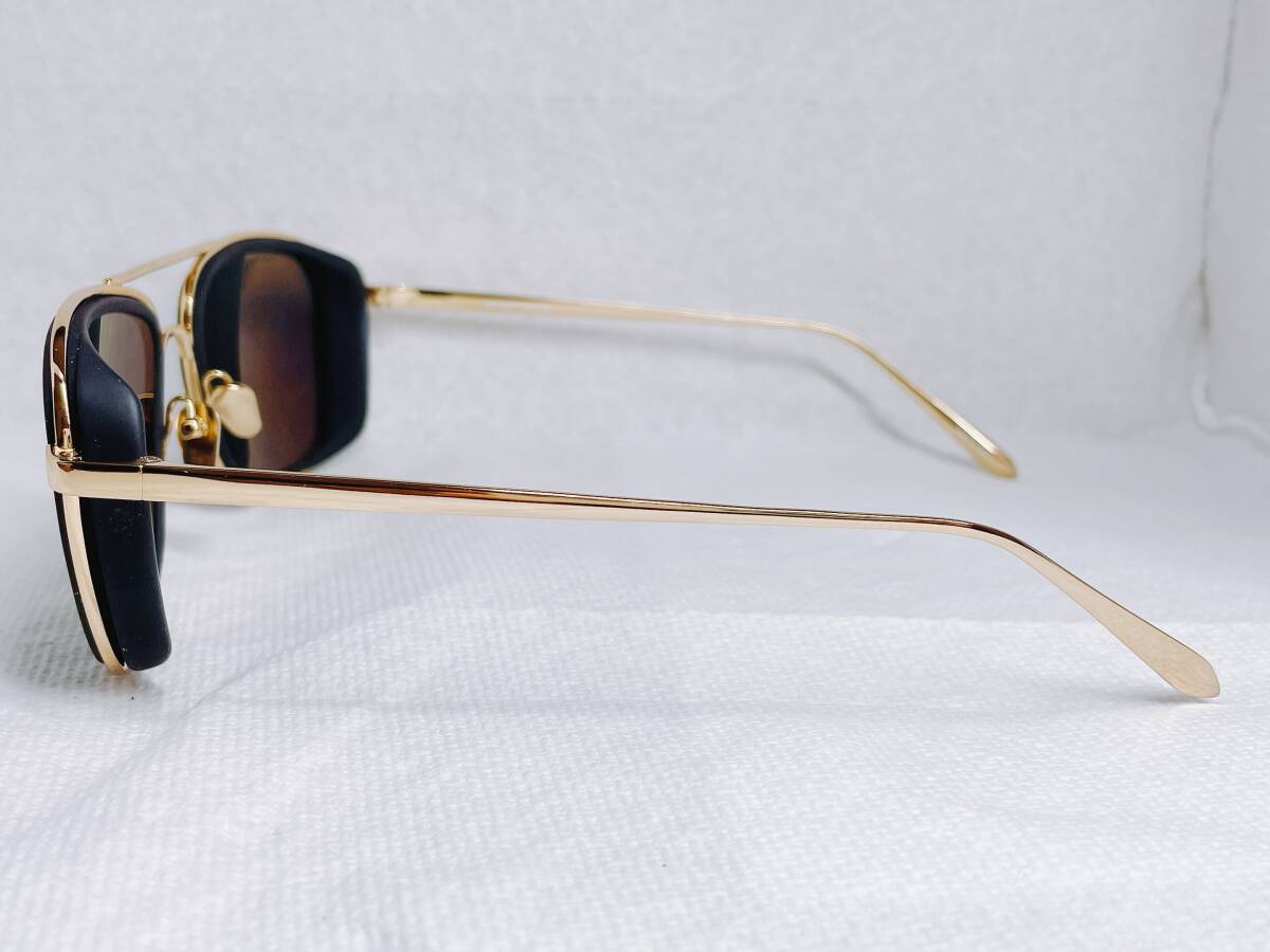 B-667 新品 サングラス 日本製 LINDA FARROW リンダファロー 53□18 135 24g ウエリントン 金黒 男女 眼鏡 メガネ ブランド 未使用