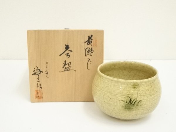 ys7420710; 三十一世 加藤唐三郎造 黄瀬戸茶碗(共箱)【道】