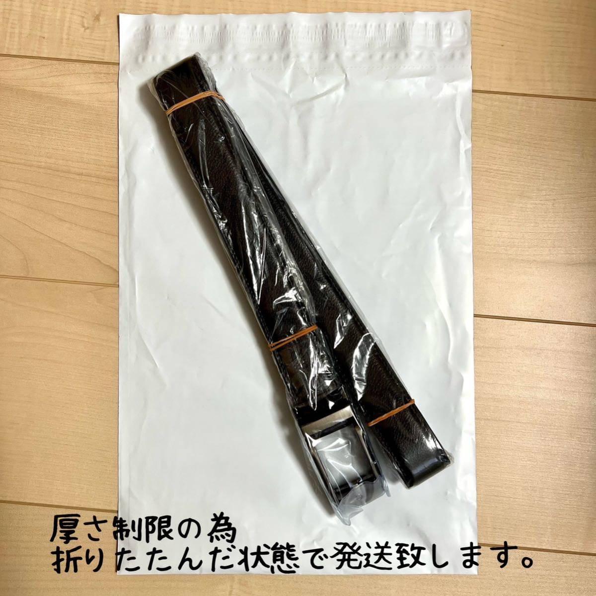 厚さ3センチ制限のある発送方法となりますので、ベルト部分を折りたたんで梱包させて頂きます。