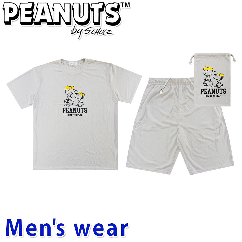 正規店仕入れの新品未使用品です ポリエステル素材で、吸汗速乾に優れます スヌーピーの収納袋付きドライ上下セット ウエストはゴムで伸びヒモで調節できます |