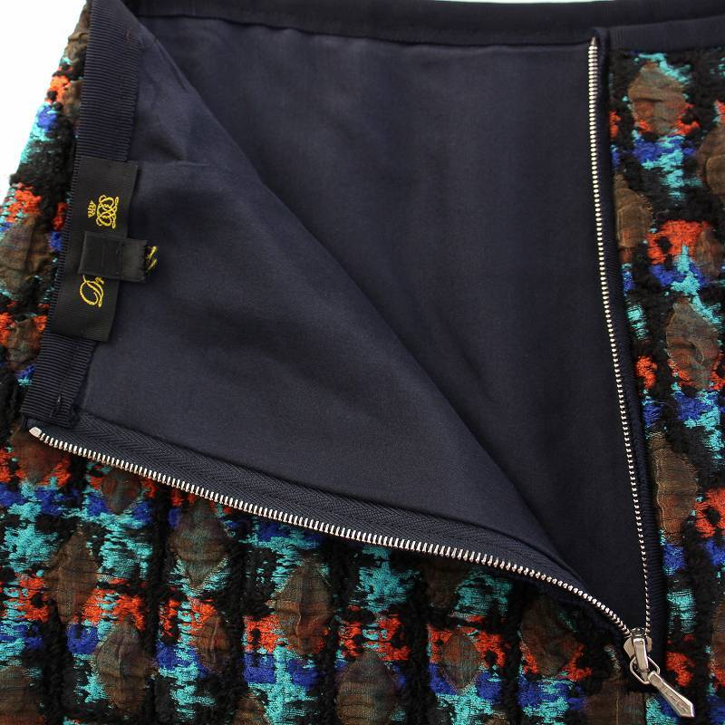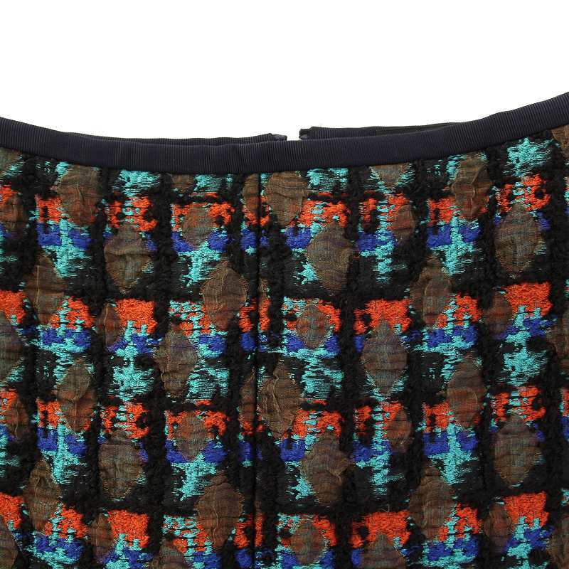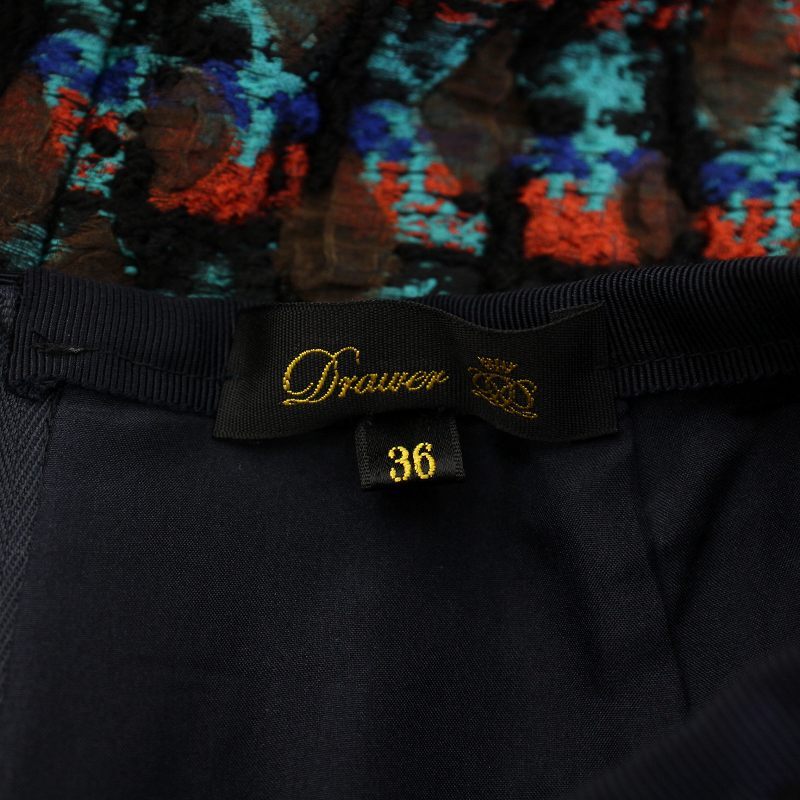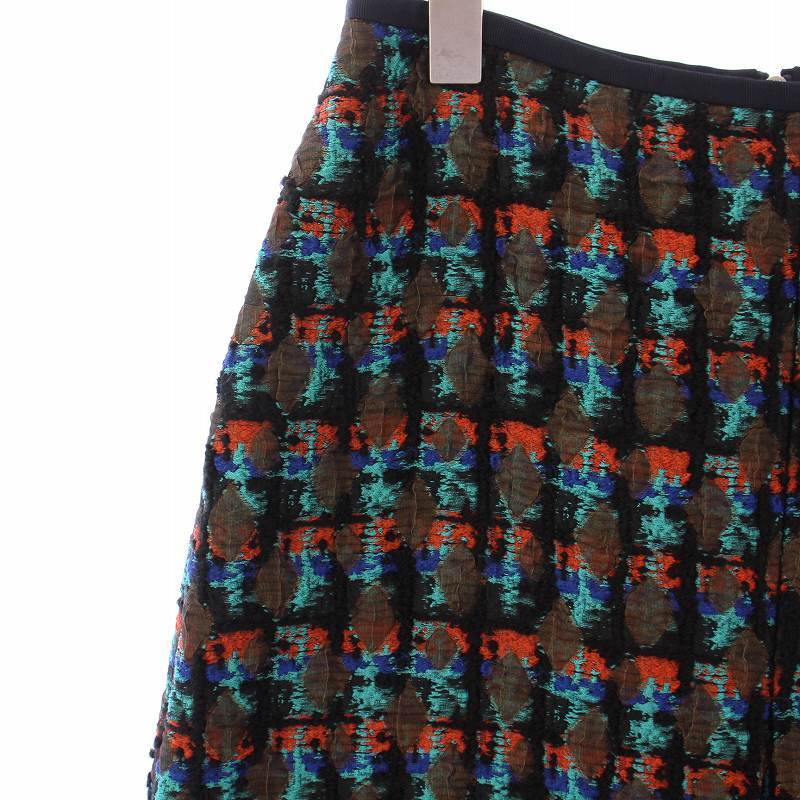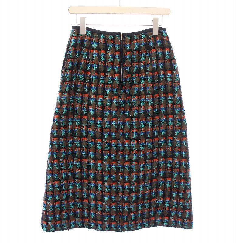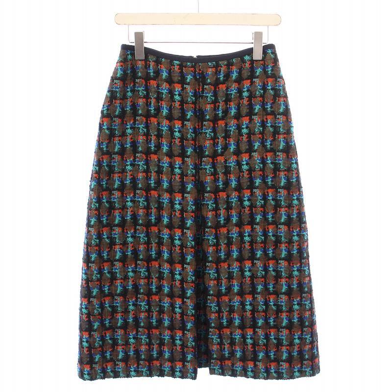 ドゥロワー Drawer ジャカード ボックス フレアスカート ミモレ ロング チェック柄 ウール混 シルク 36 マルチカラー 6524-299-1242