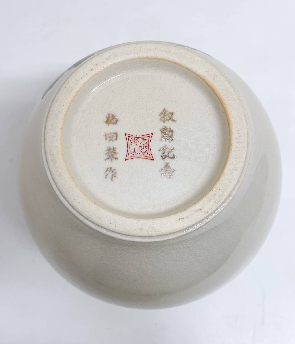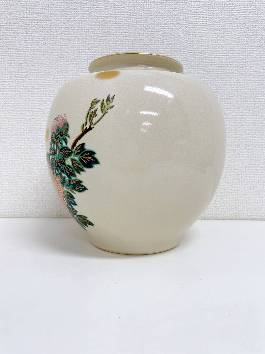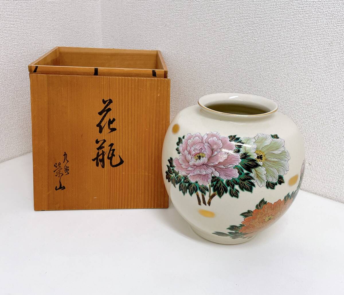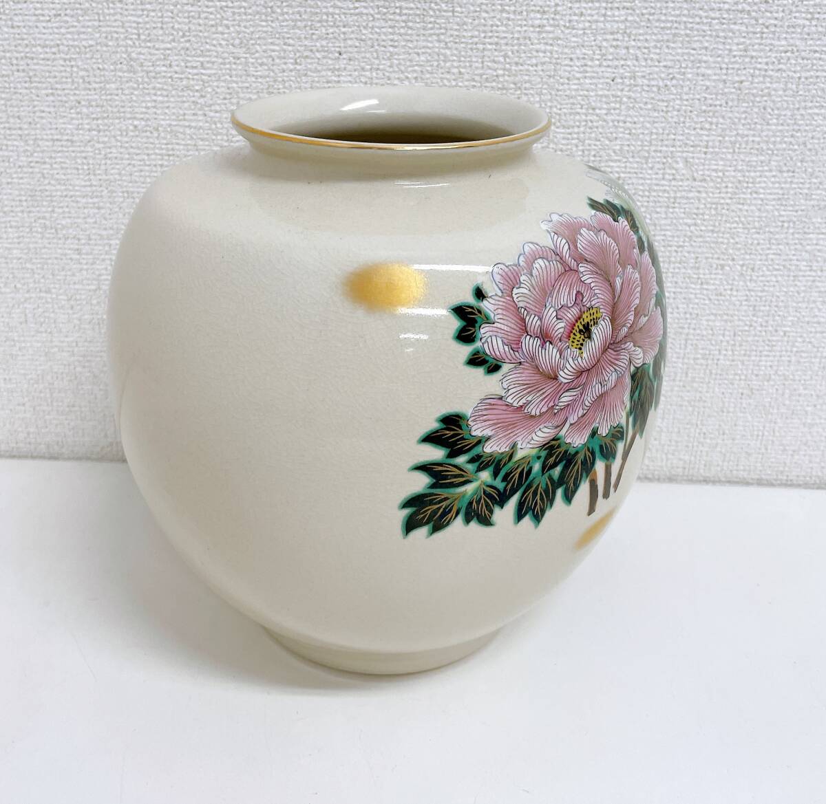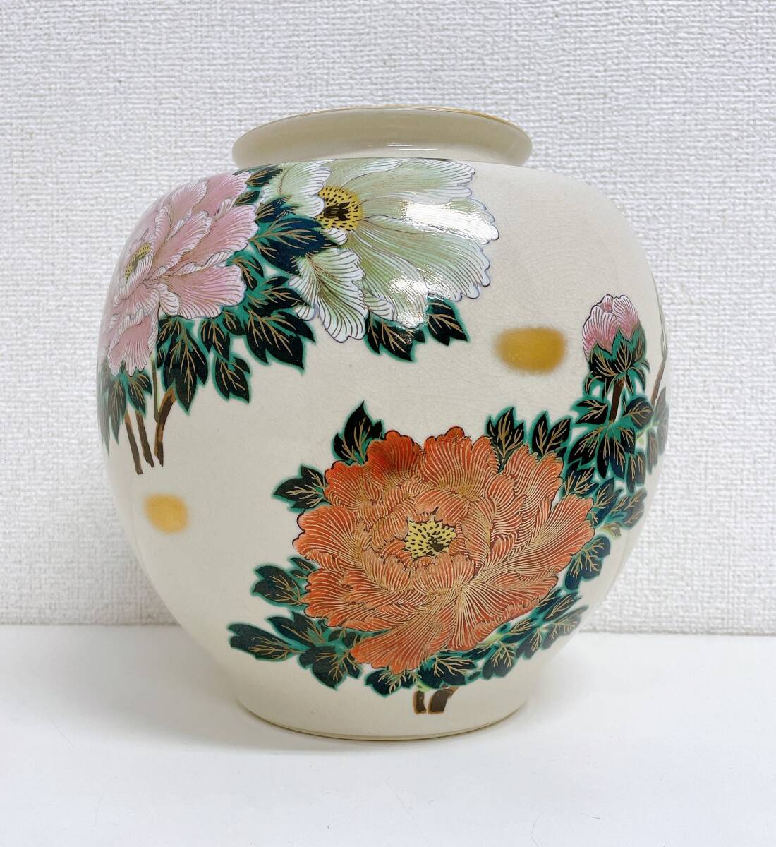【九谷焼 牡丹柄 栄山作 花瓶】花生/フラワーベース/工芸品/インテリア/A77-435