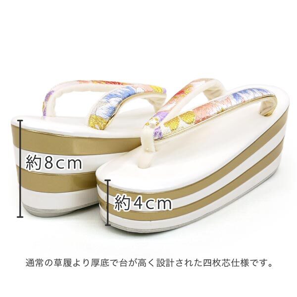 草履の台が四段の厚底草履で振袖の立ち姿をより華やかに演出します。
