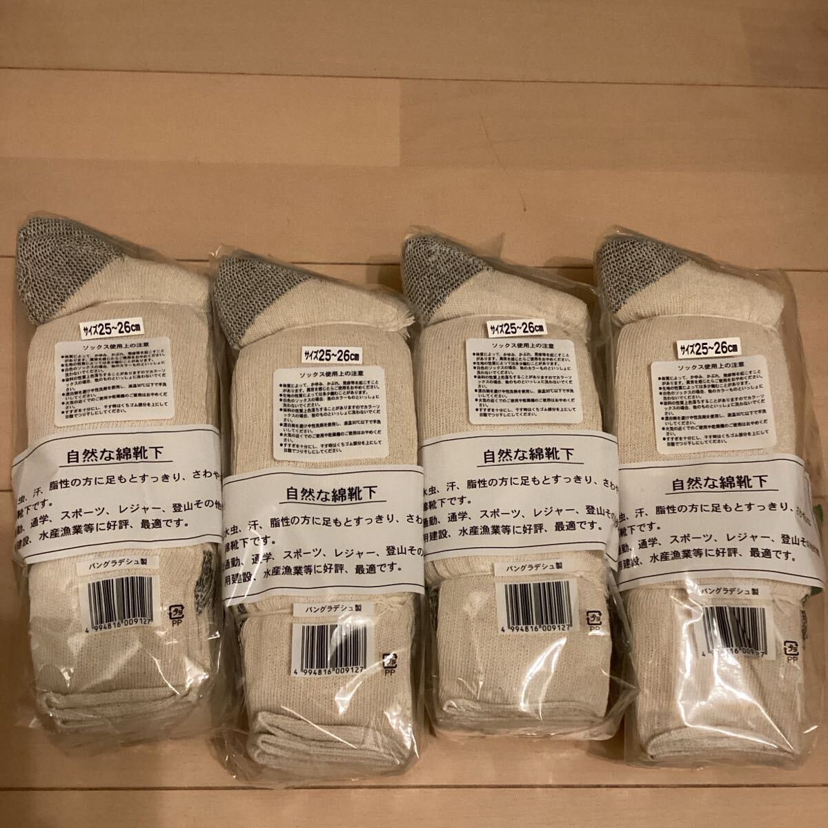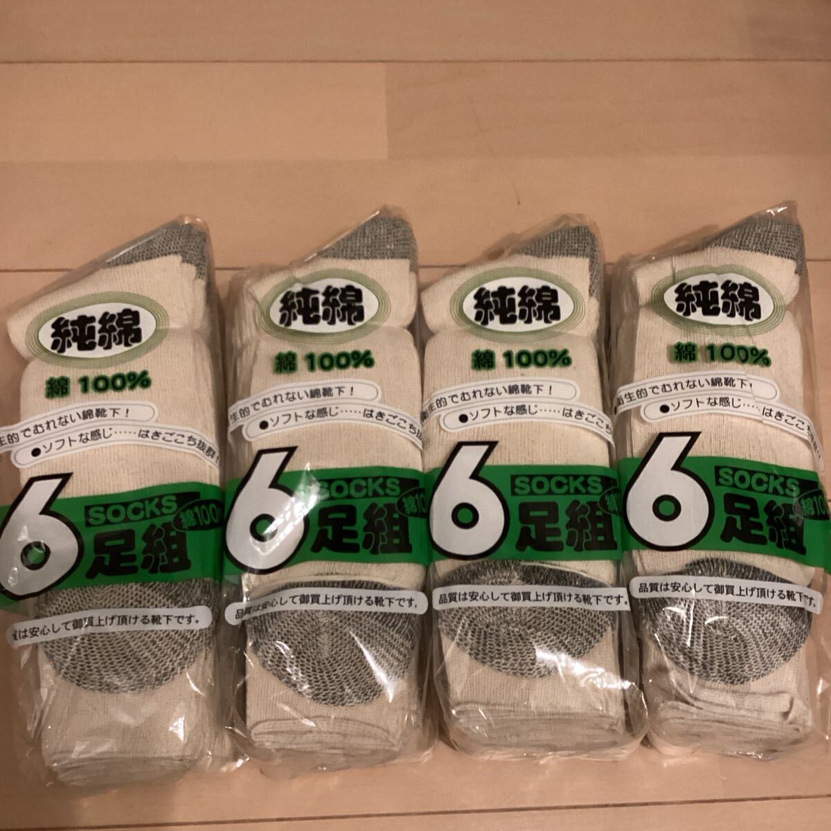 純綿軍足先丸(かかと付き) 綿100% 6足セット×4個靴下 25-26cm