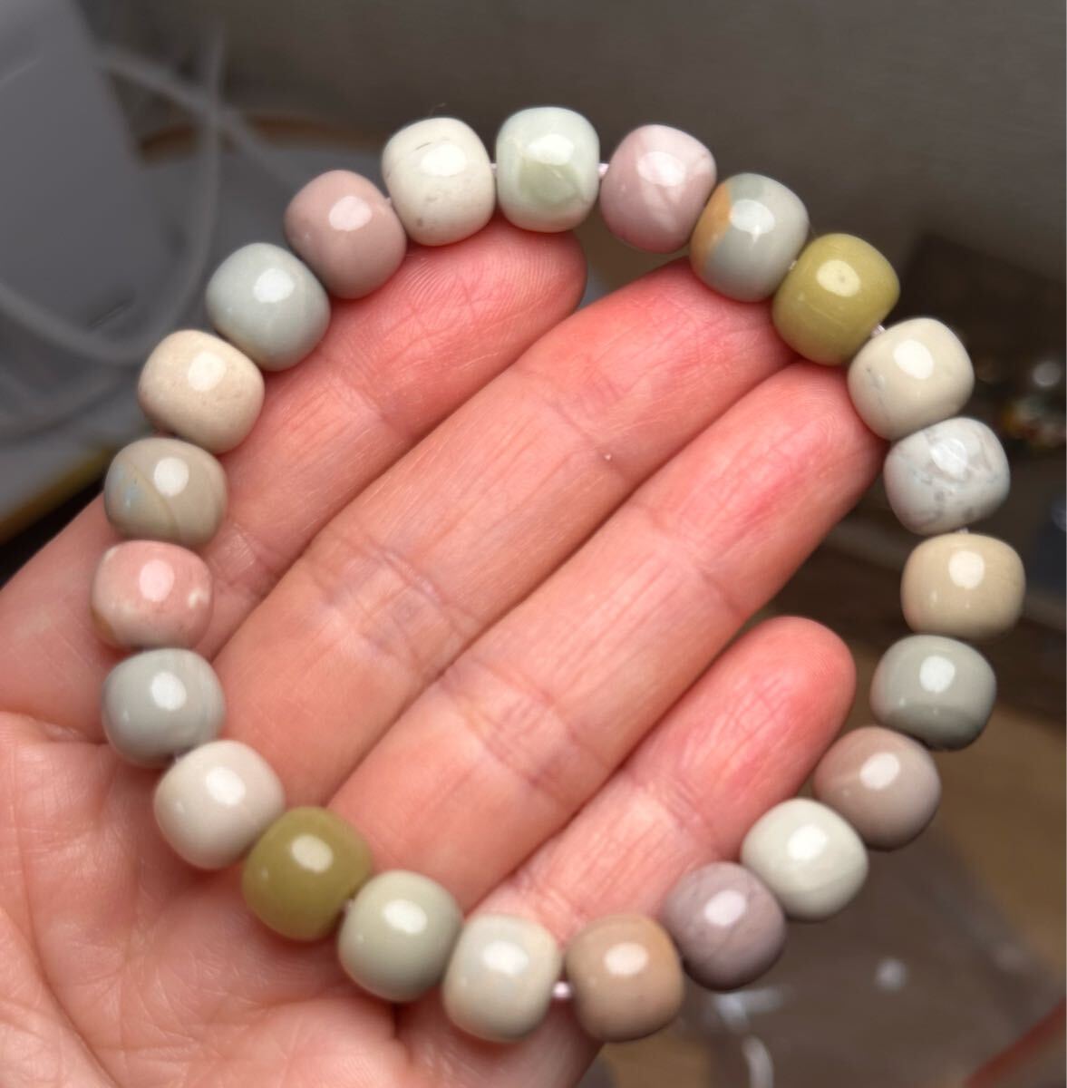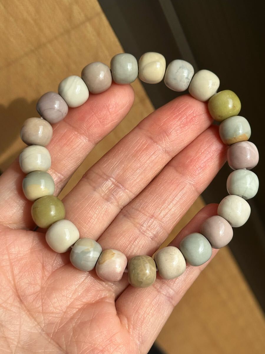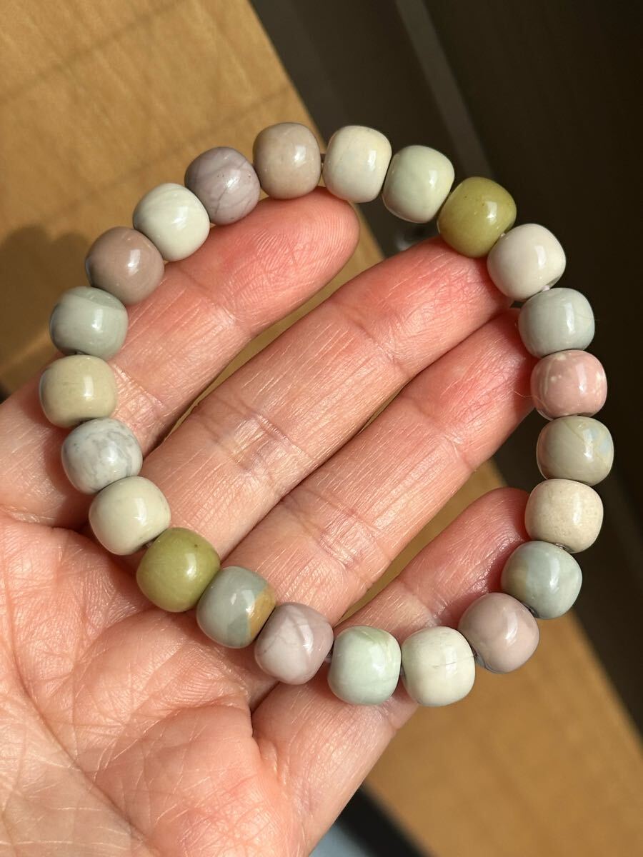 モンゴル産の天然アラシャメノウブレスレットです。マルチカラーでセラミック感あり、全体的に綺麗です。