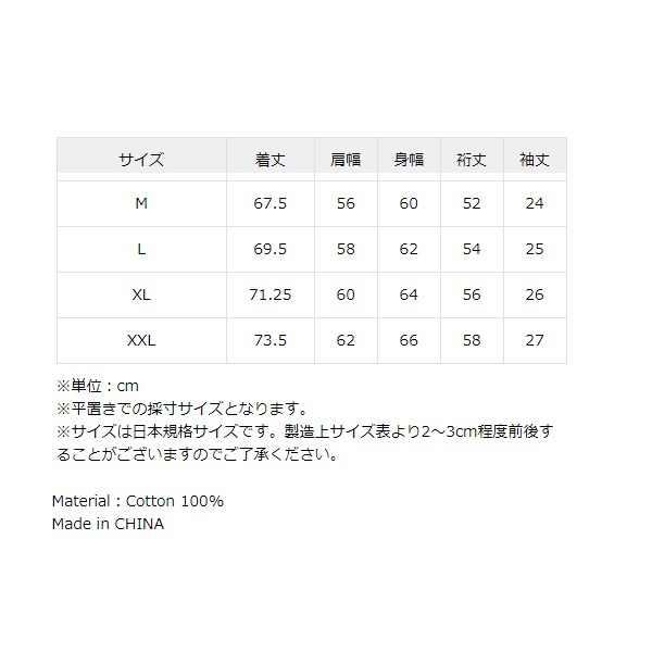 L:着丈69.5 身幅62 肩幅58 袖丈25(cm)