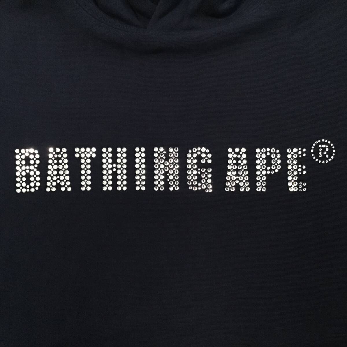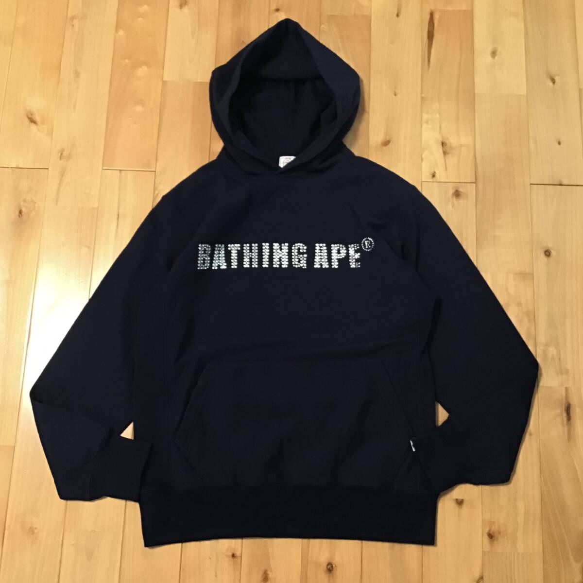 a bathing ape ★初期★ スワロフスキー BAPEロゴ プルオーバーパーカー ネイビー Sサイズ です★
