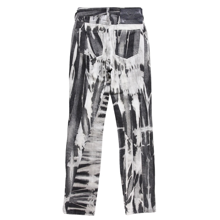 【平置き実寸サイズ】※単位cm Wはウエスト、Hはヒップ 【W23L32】W60 H81 ワタリ24 股上25 股下72 裾幅15 【素材】コットン(綿)98% ポリウレタン2% 付属部品:レザー(牛革)100% 【生産国】ITALY 【フライ】ジッパーフライ 【ストレッチ】弱ストレッチ 【生地の厚み】一般的な厚み 【仕様】 ・裁断箇所により柄に個体差がございます。 | ![]() |