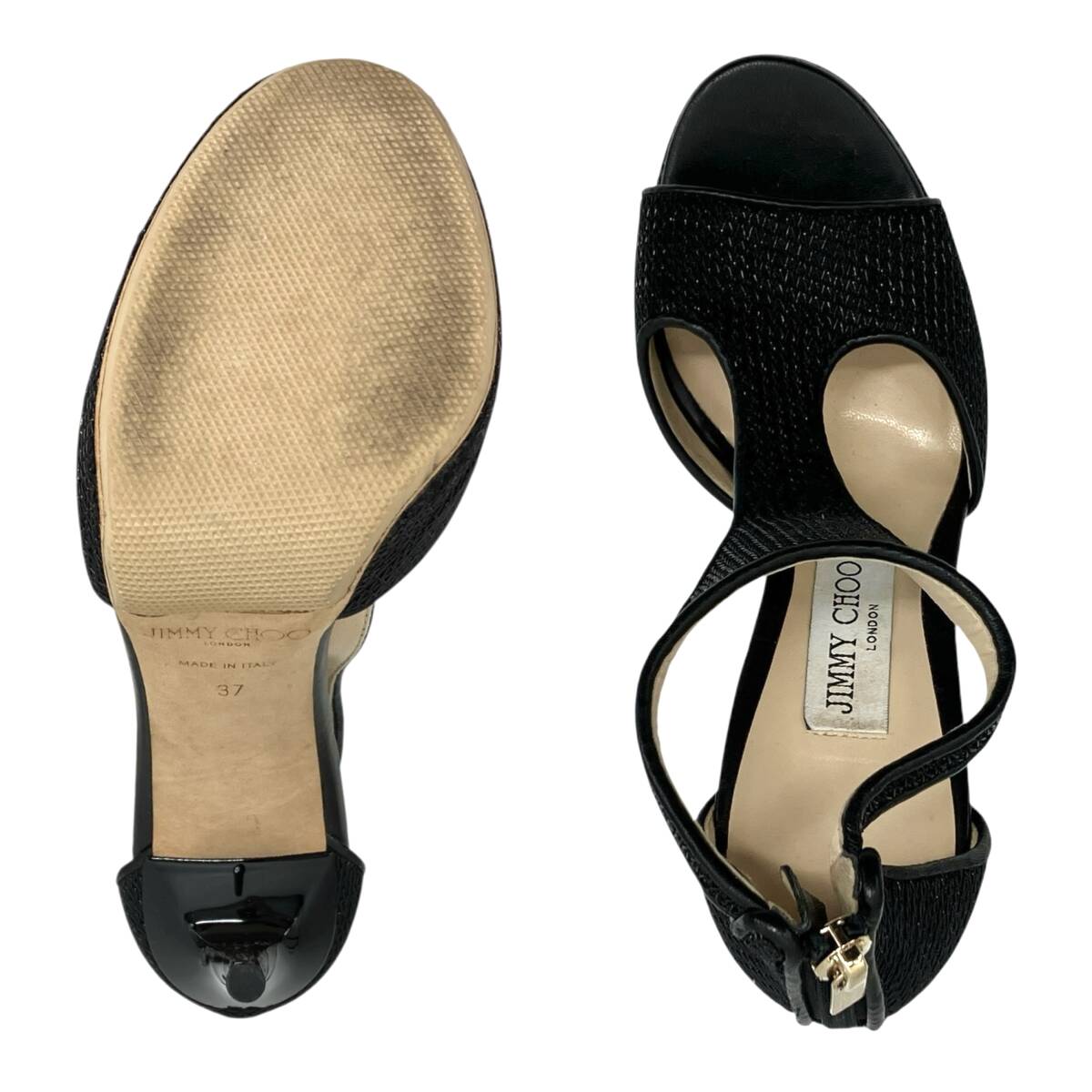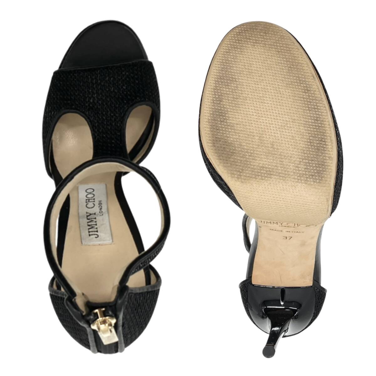 ブラックとベージュのカラーコンビネーションが、洗練された大人の上品さを演出。 オープントゥデザインで足元に軽やかさを添えつつ、フォーマルからカジュアルまで幅広く活躍します。 履くだけでコーデを格上げしてくれる、ジミーチュウのハイヒールサンダルならでは逸品です。 |