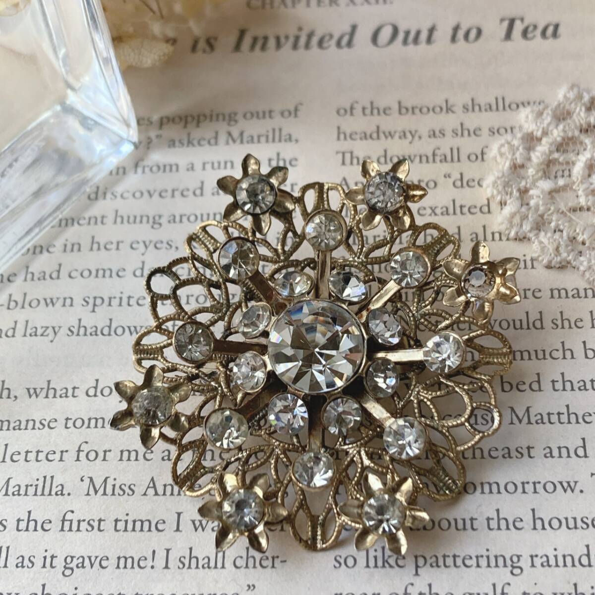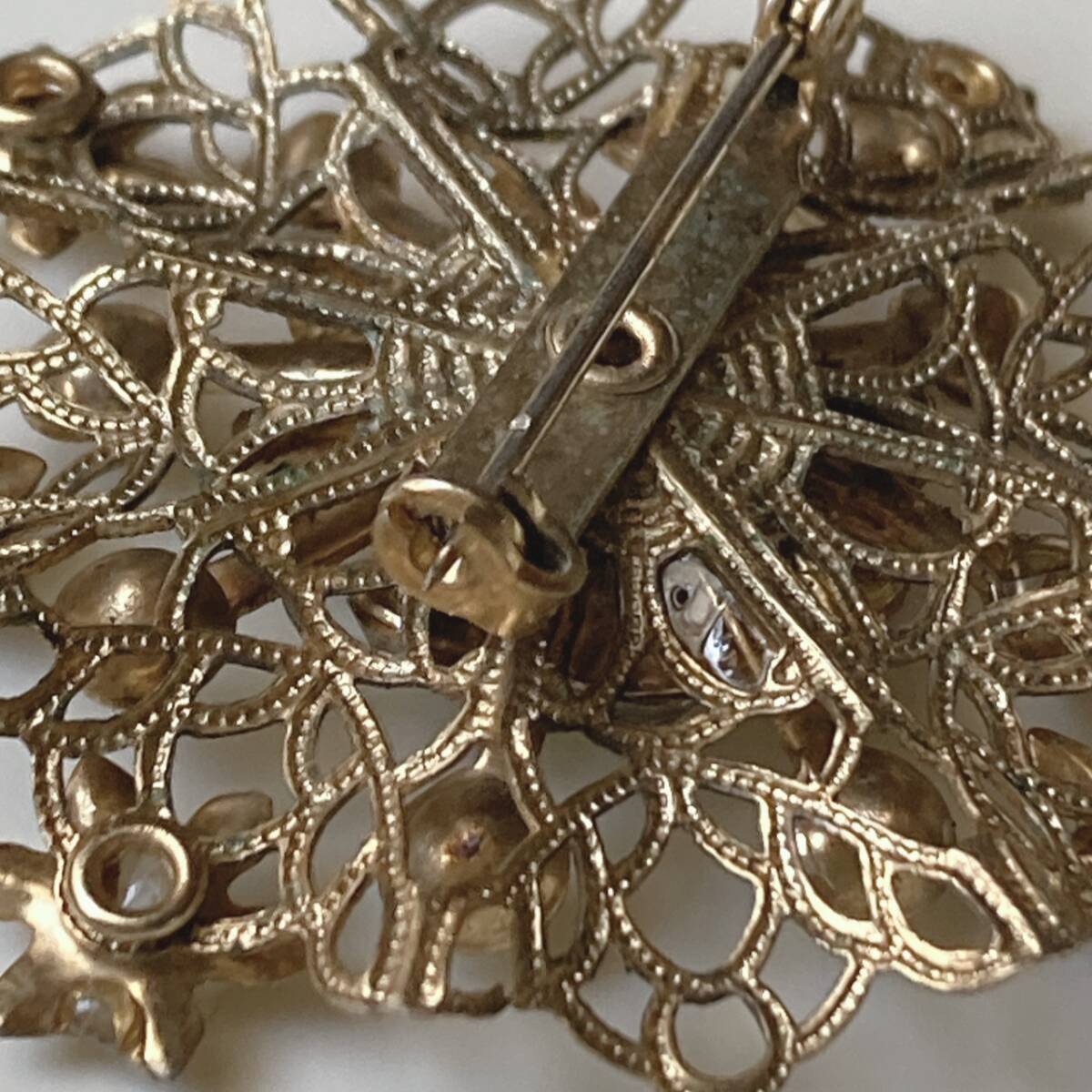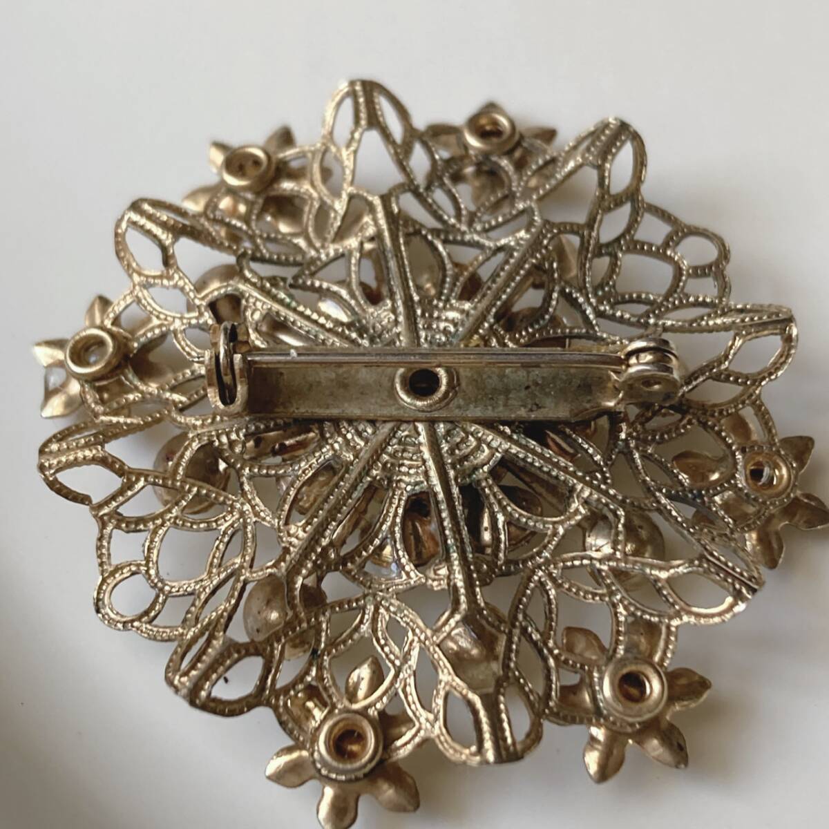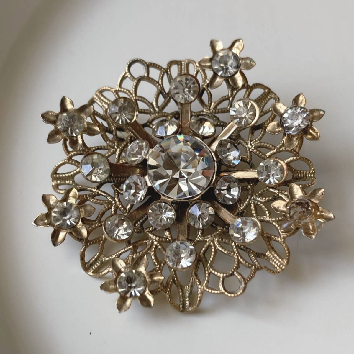 ヴィンテージブローチ クリアストーン ゴールドトーン ゴージャス キラキラ アンティーク☆vintage jewelry accessoriesR0865