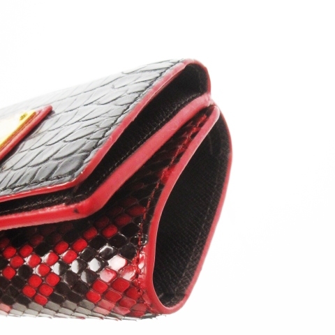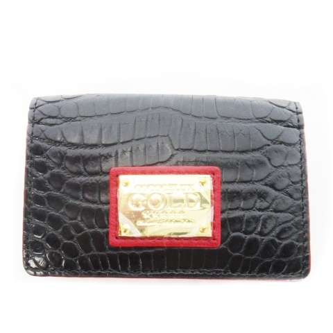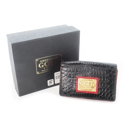 未使用品 ココセリュックス ゴールド COCOCELUX GOLD 三つ折り財布 小銭入れあり レザー 革 クロコ パイソン ワニ革 配色 ロゴ 黒 赤