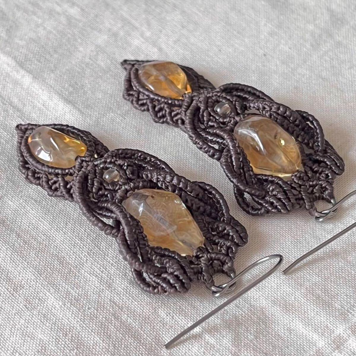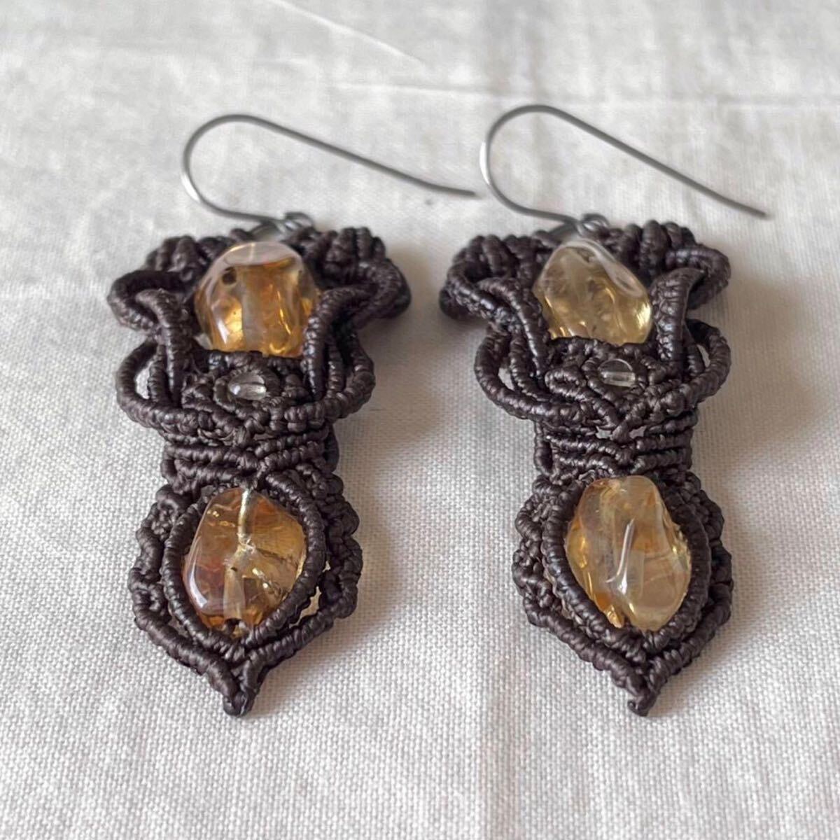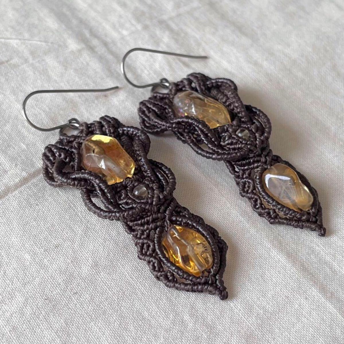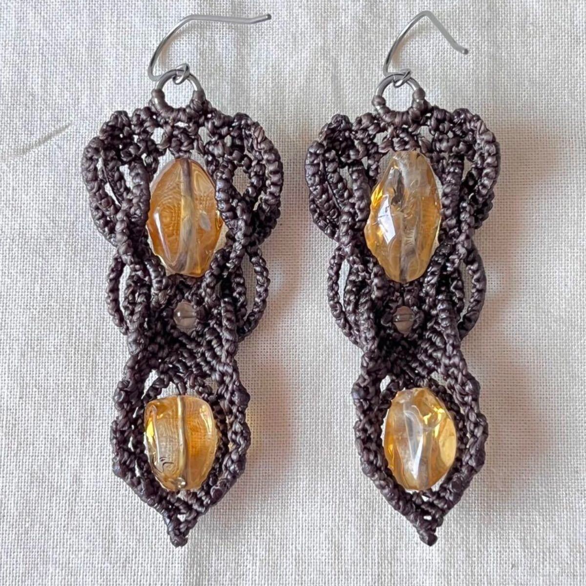 マクラメは糸を固く結びながら装飾を施す技法です。糸端は焼き留めで仕上げております。その為ニットやオーガンジーなどのザックリした生地に引っかかる場合があります。
