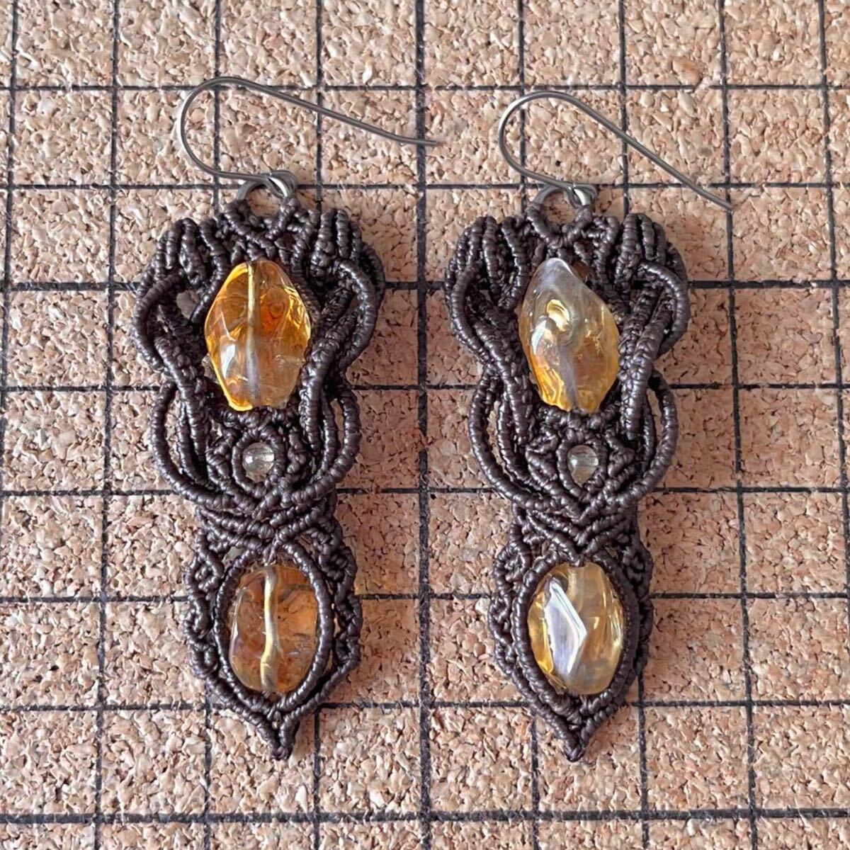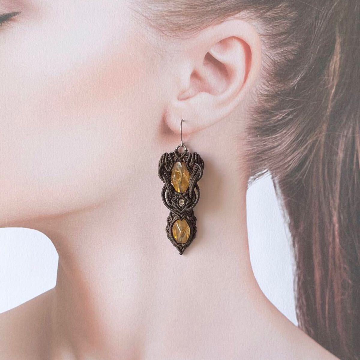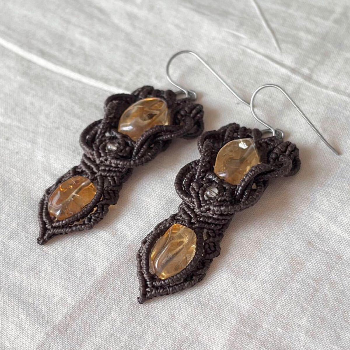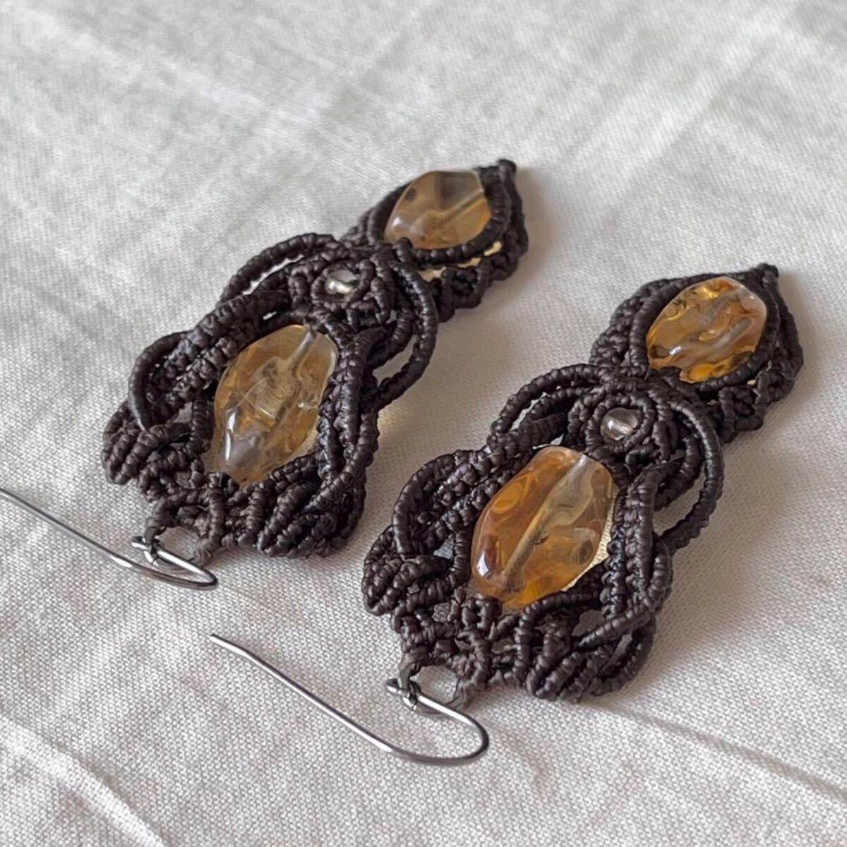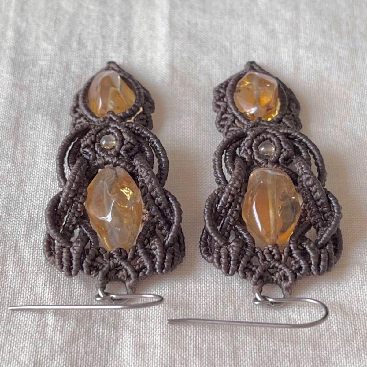 マクラメは糸を固く結びながら装飾を施す技法です。糸端は焼き留めで仕上げております。その為ニットやオーガンジーなどのザックリした生地に引っかかる場合があります。