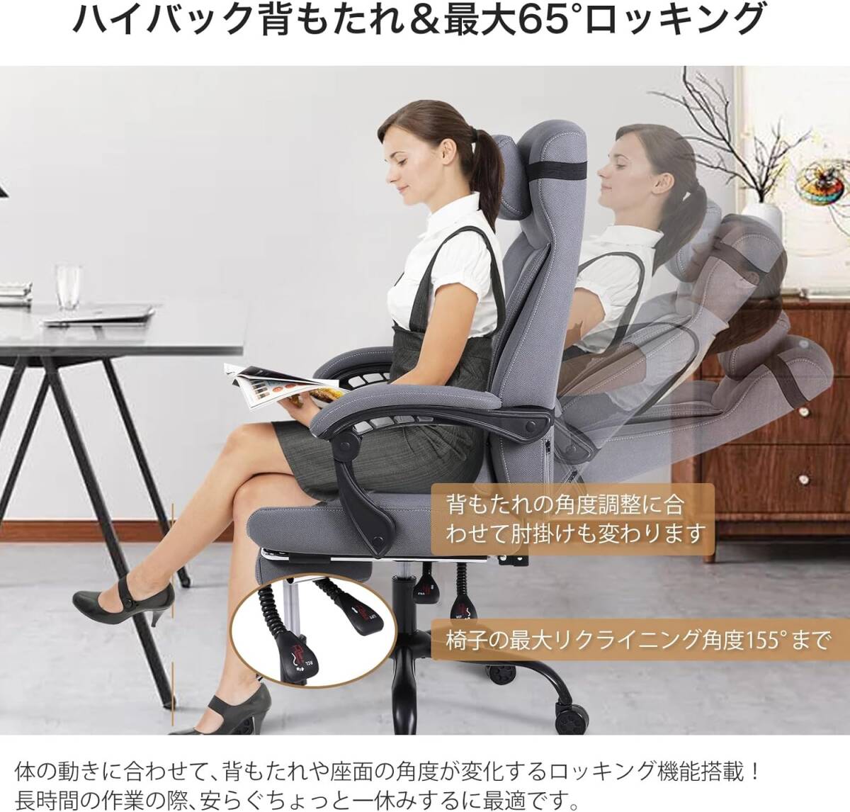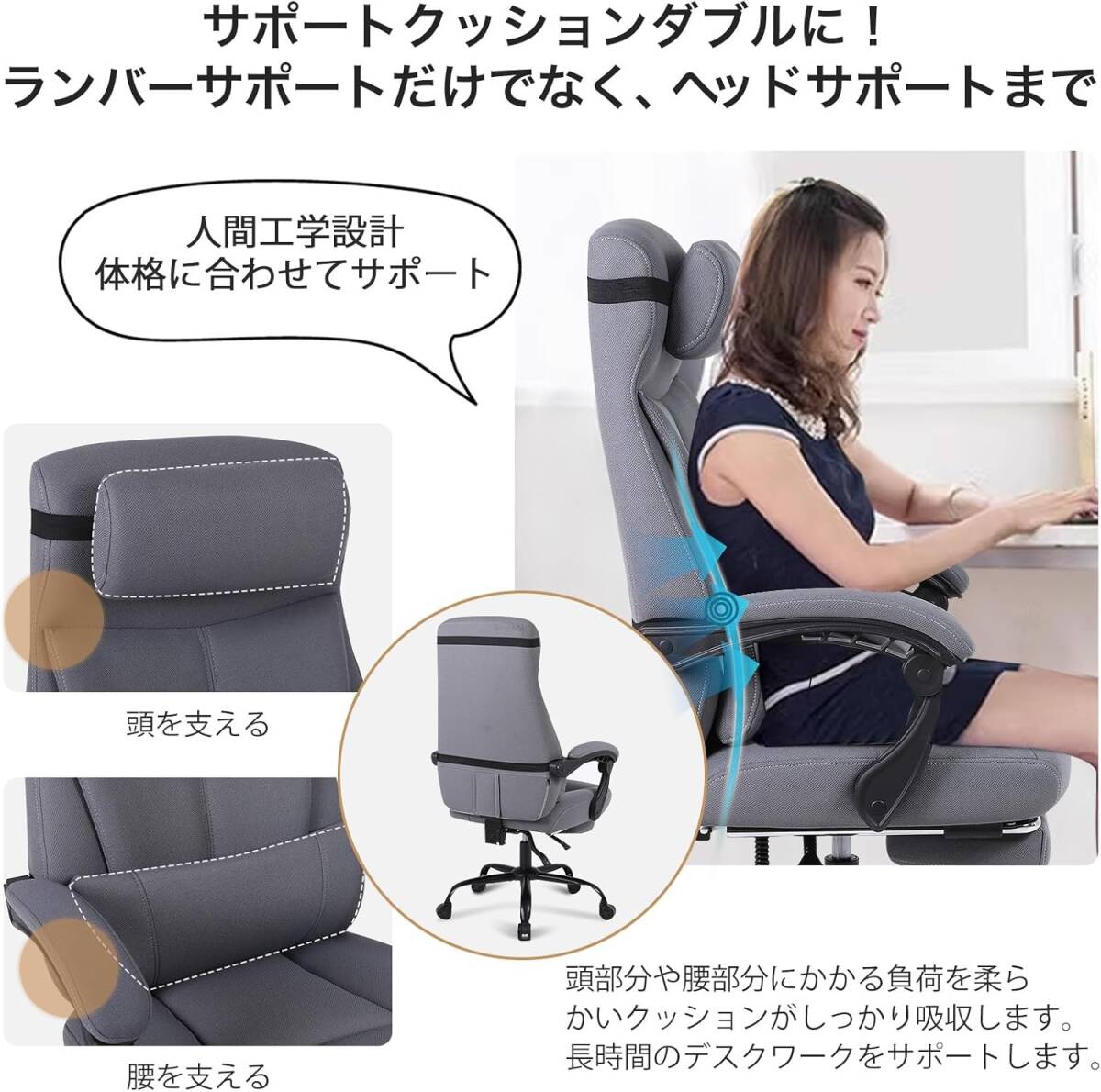 1日中座っても疲れない 極厚ふわもこクッション オフィスチェア デスクチェア チェア 椅子 テレワーク 疲れない ハイバック