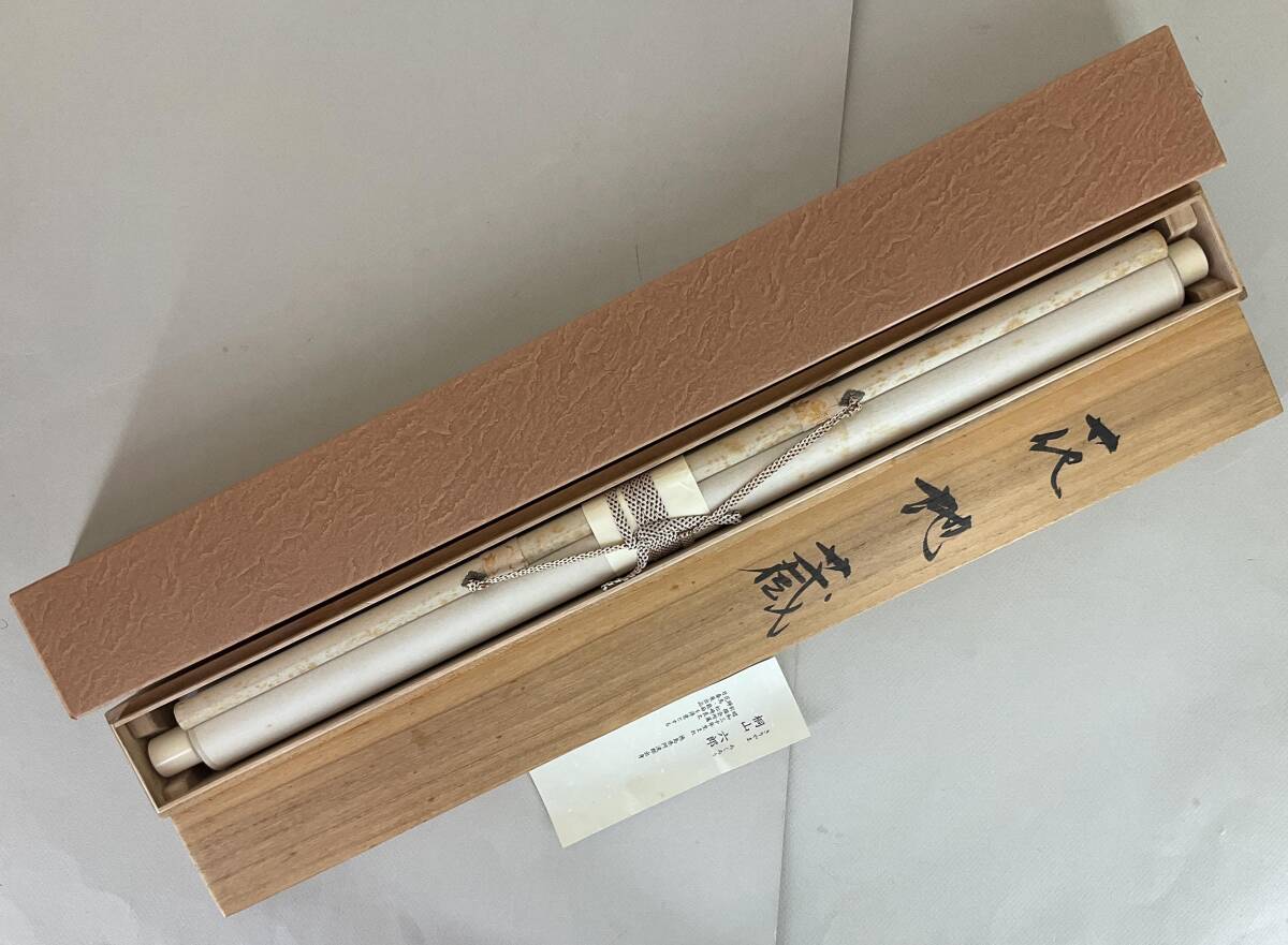 古い掛け軸は軸先を固定している接着剤が弱り、輸送途中の衝撃で軸先が外れてしまう場合がございます。
