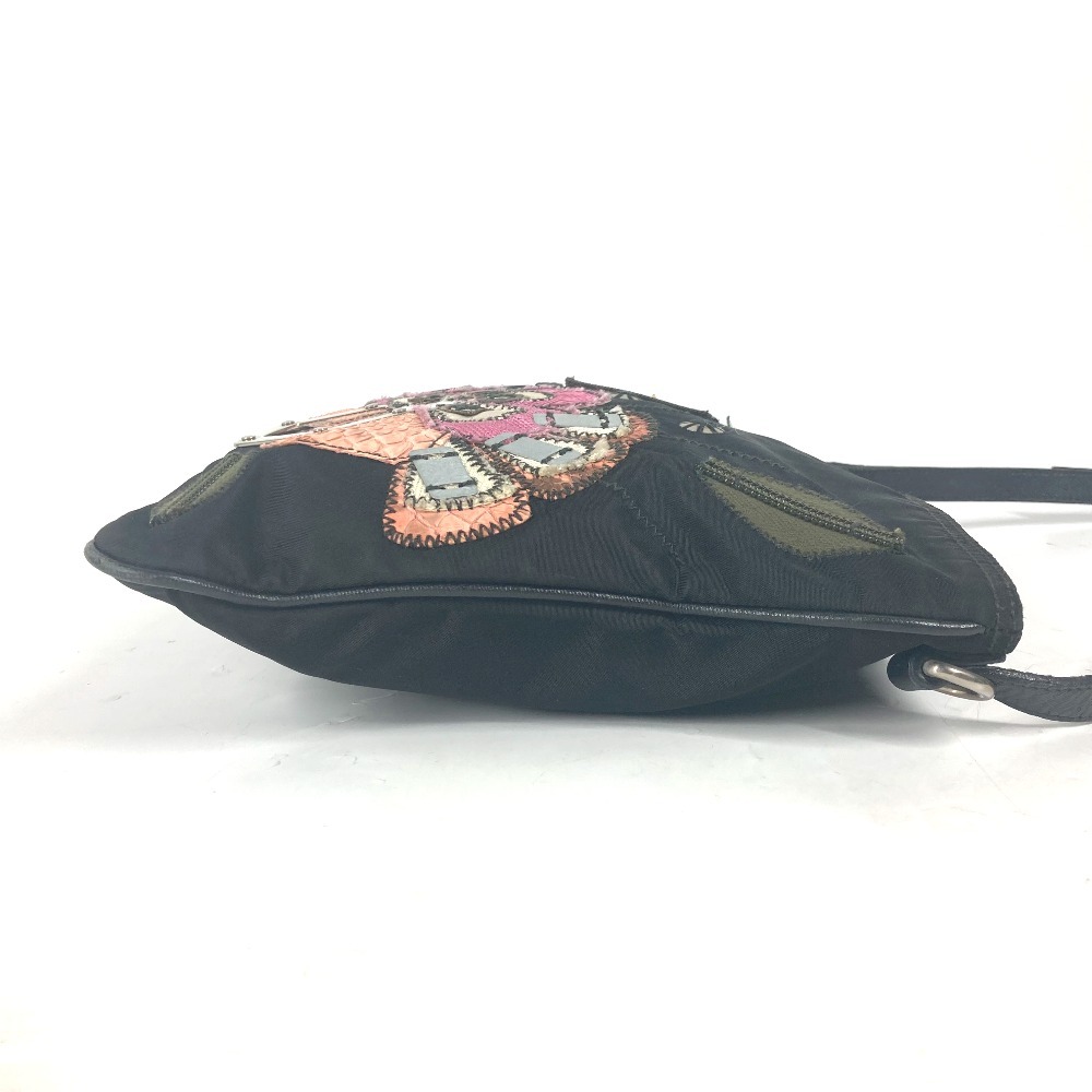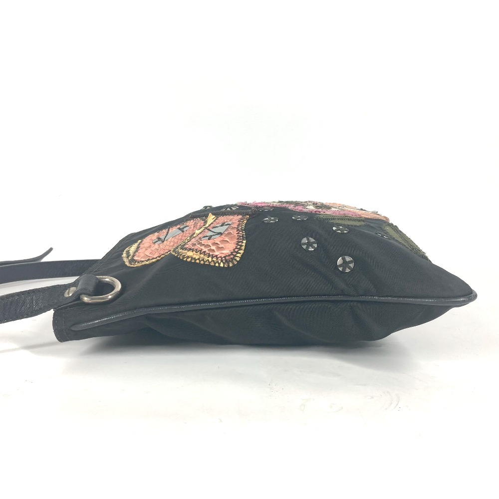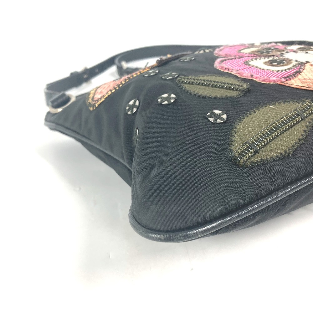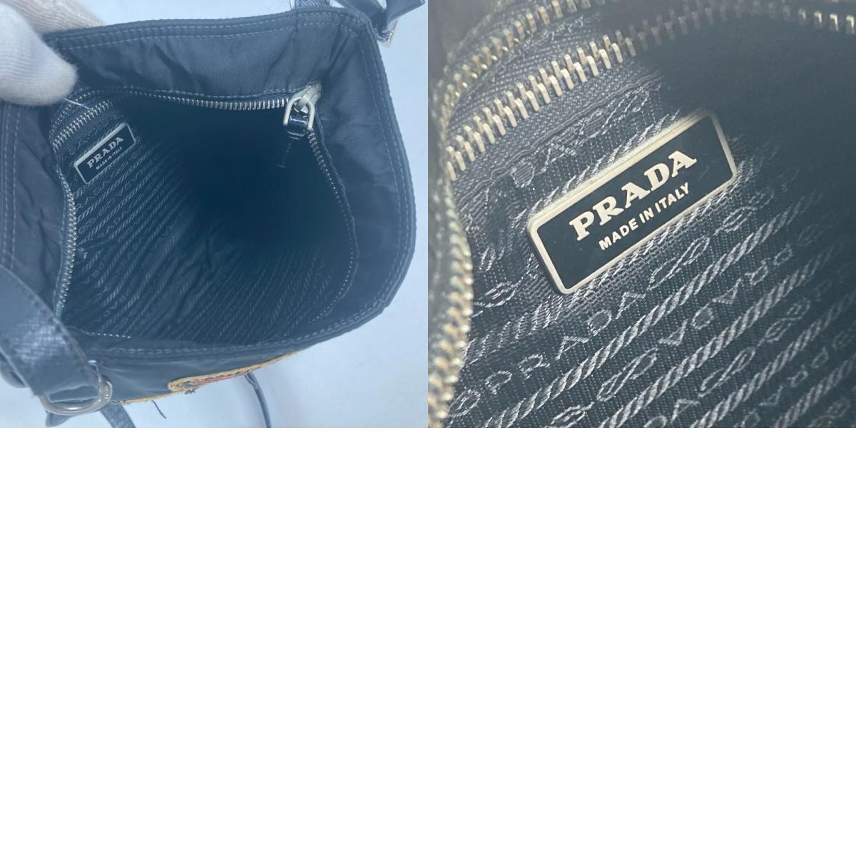 PRADA プラダ ロゴ 刺繍 カバン 斜め掛け ポシェット ショルダーバッグ ブラック レディース【中古】