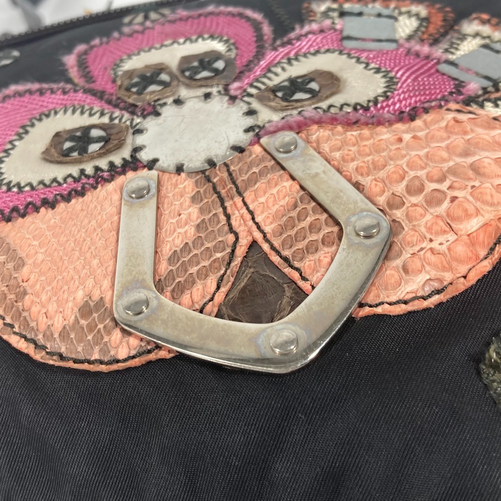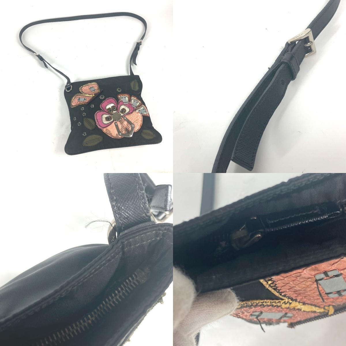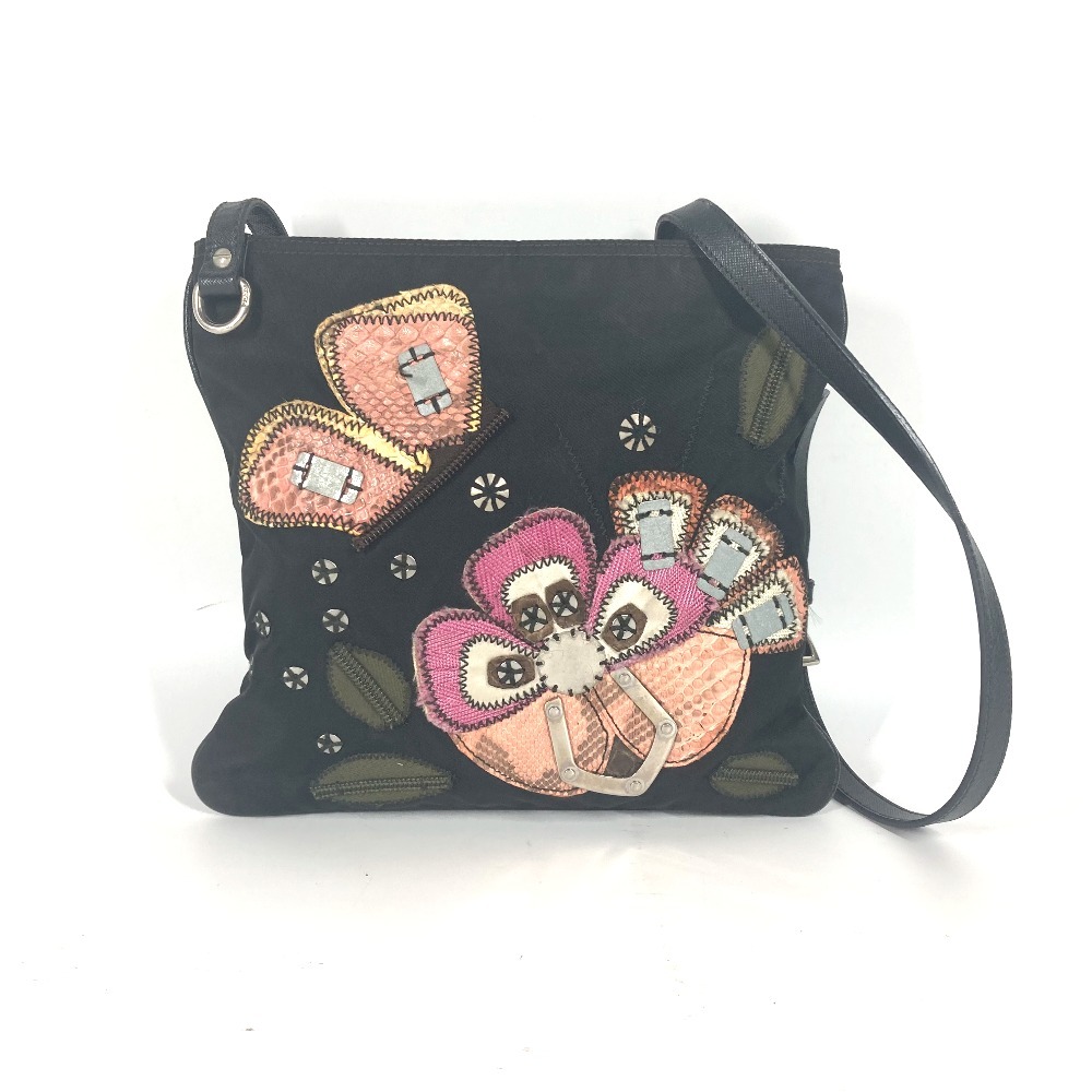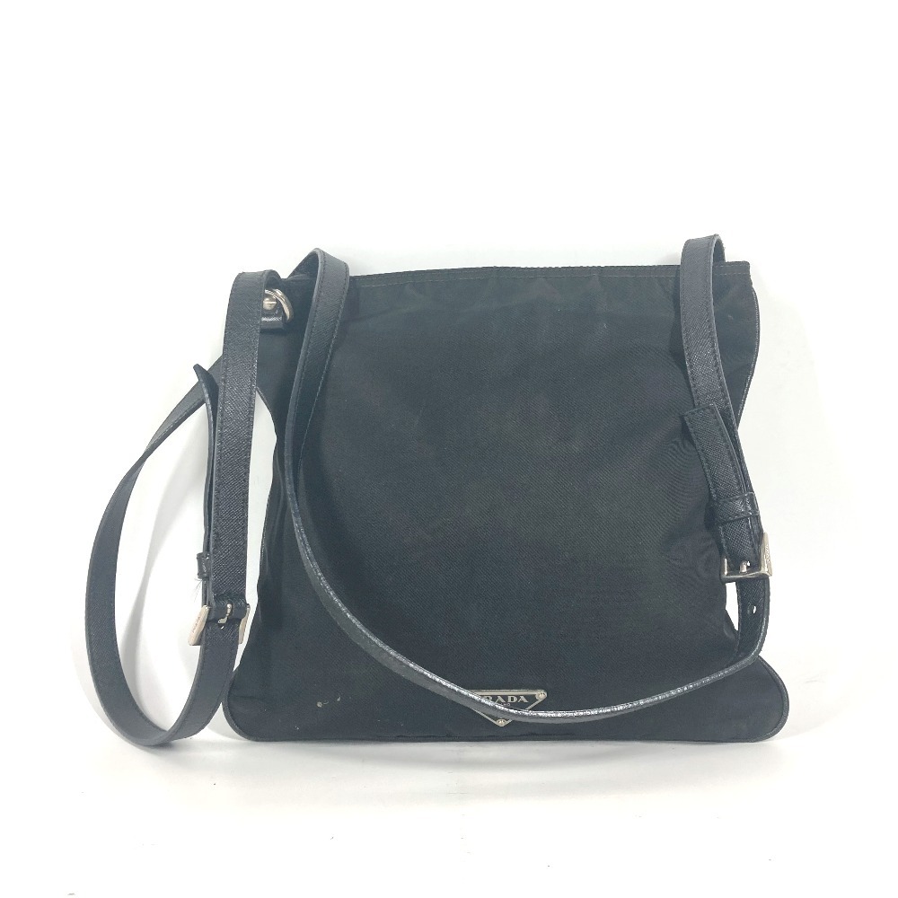 PRADA プラダ ロゴ 刺繍 カバン 斜め掛け ポシェット ショルダーバッグ ブラック レディース【中古】