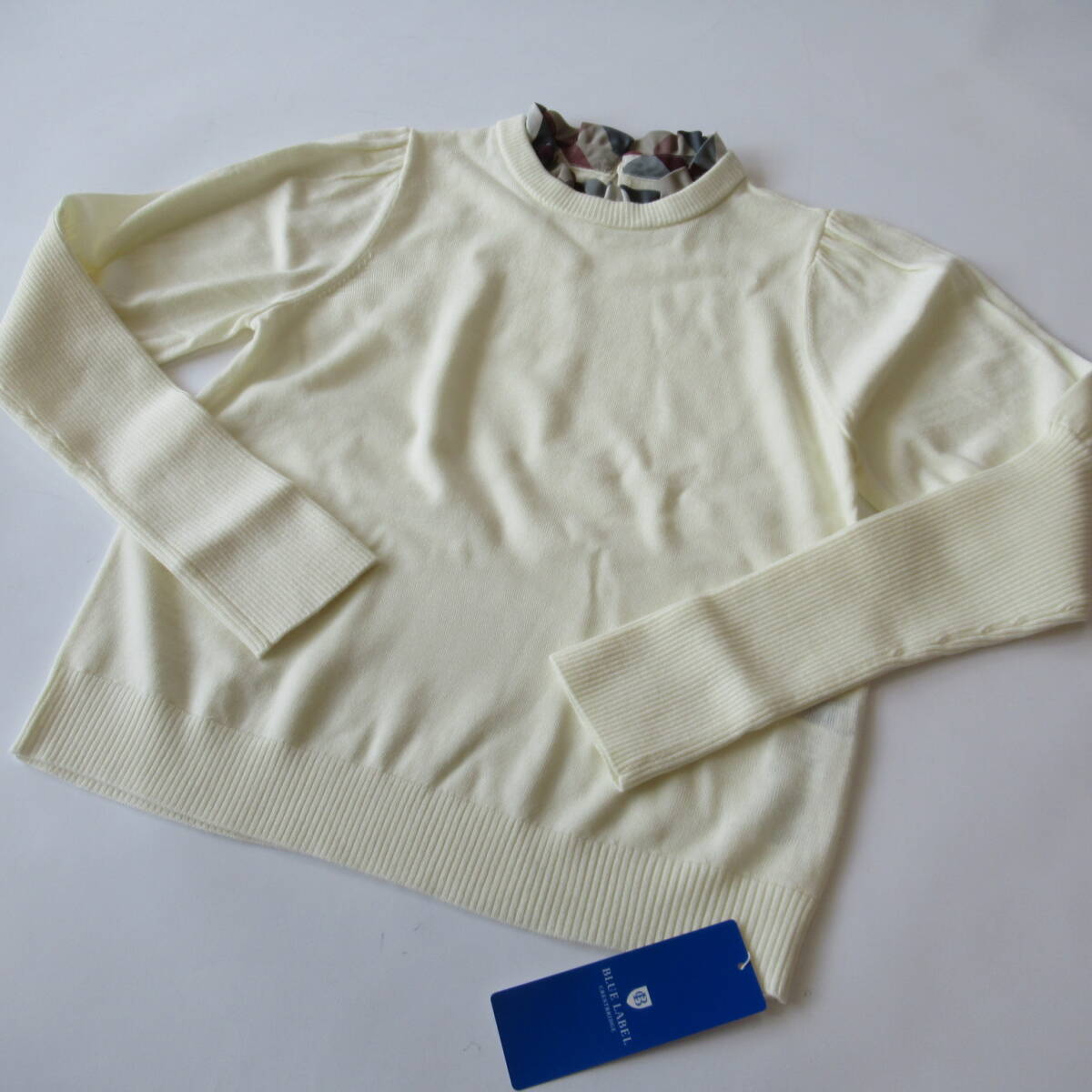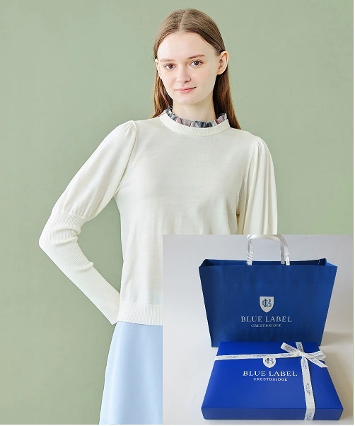 ブルーレーベルクレストブリッジ 新品ホワイト ウールアクリルブレンドマトンスリーブニット 38 限定商品 になります。定価25,300円(税込み)の商品になります。ブルーレーベルのラッピングをしてお届けいたします。