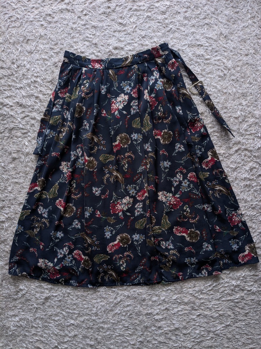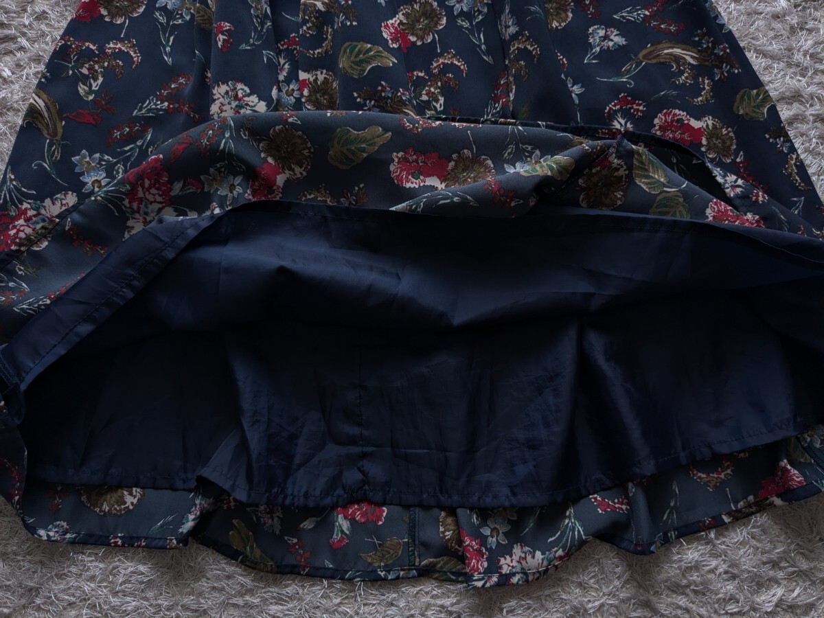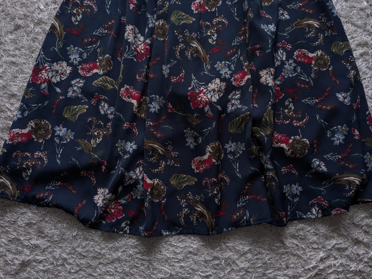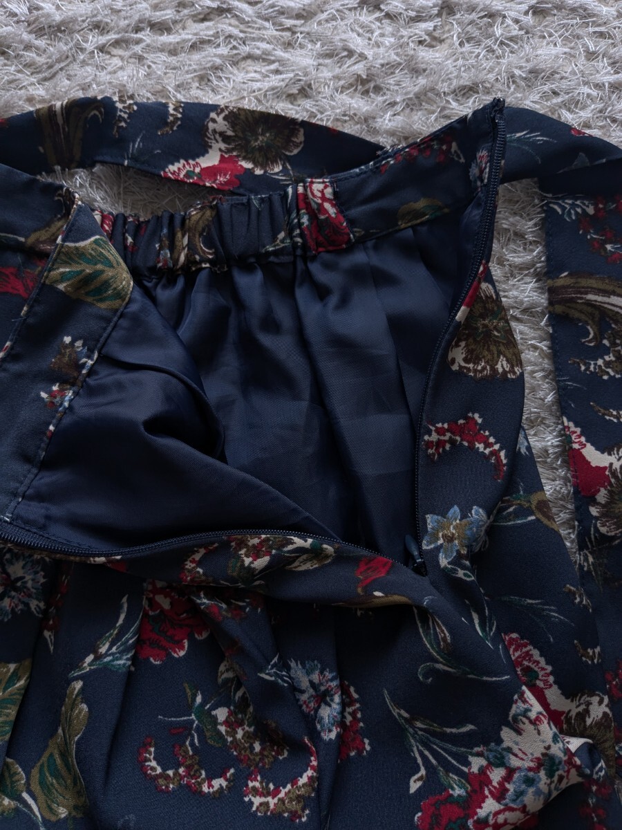 AGaquagirl ワールド 花柄プリント ネイビー 総柄デザイン華やかフェミニン ポリエステル裏地付 sizeM ウエスト一部ゴムで楽ちん 美品
