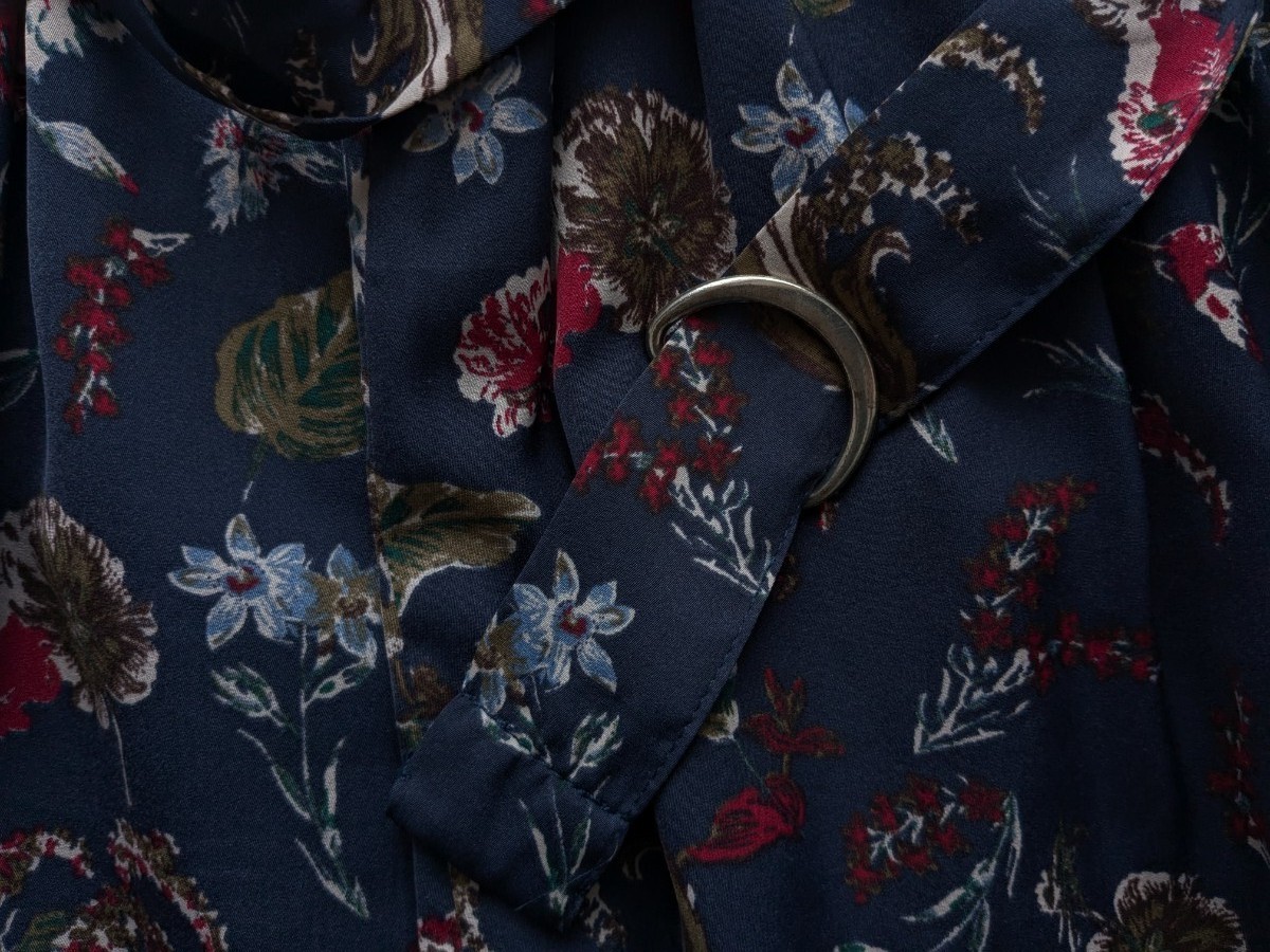 ネイビー地に総柄花柄デザインがとても華やかでフェミニン