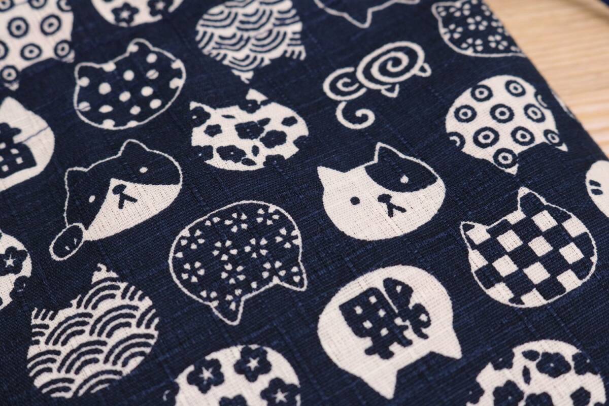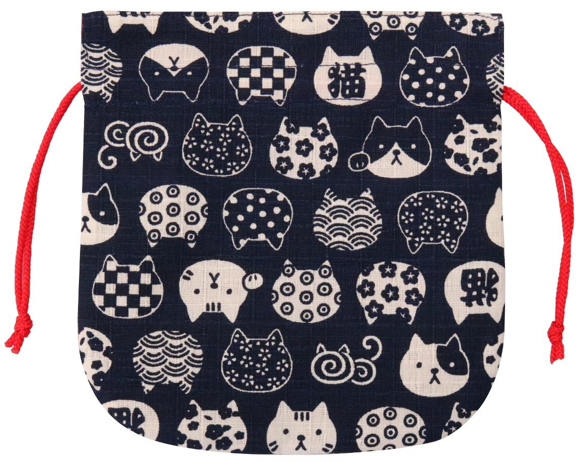 京佑 巾着 袋 小物入れ アクセサリー ミニ 猫 和柄 綿 日本製 にゃんこもん 紺 16.5×17cm