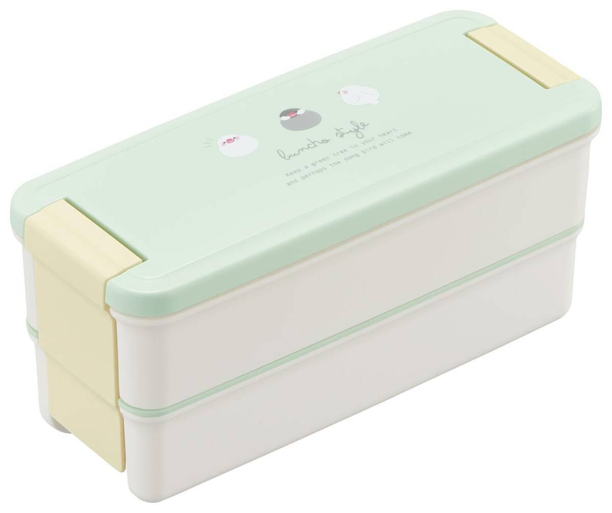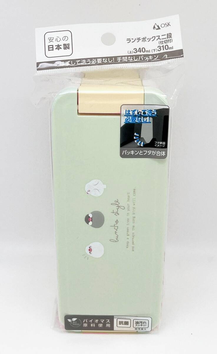 OSK(オーエスケー) 二段弁当箱 文鳥 ランチボックス二段 仕切付 上340 下310ml 日本製 食洗機 電子レンジ対応 抗菌 ロック付き